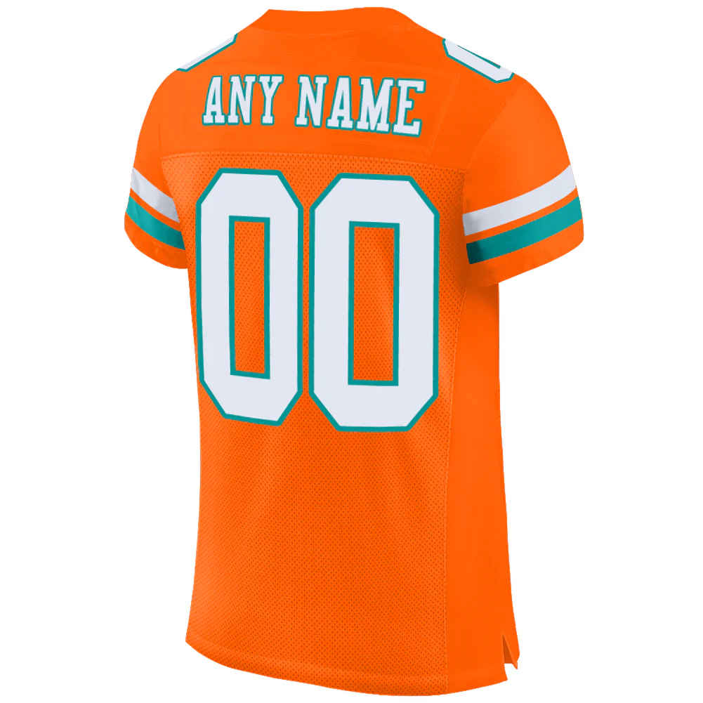 Custom Orange White-Aqua Mesh Authentic Football Jersey