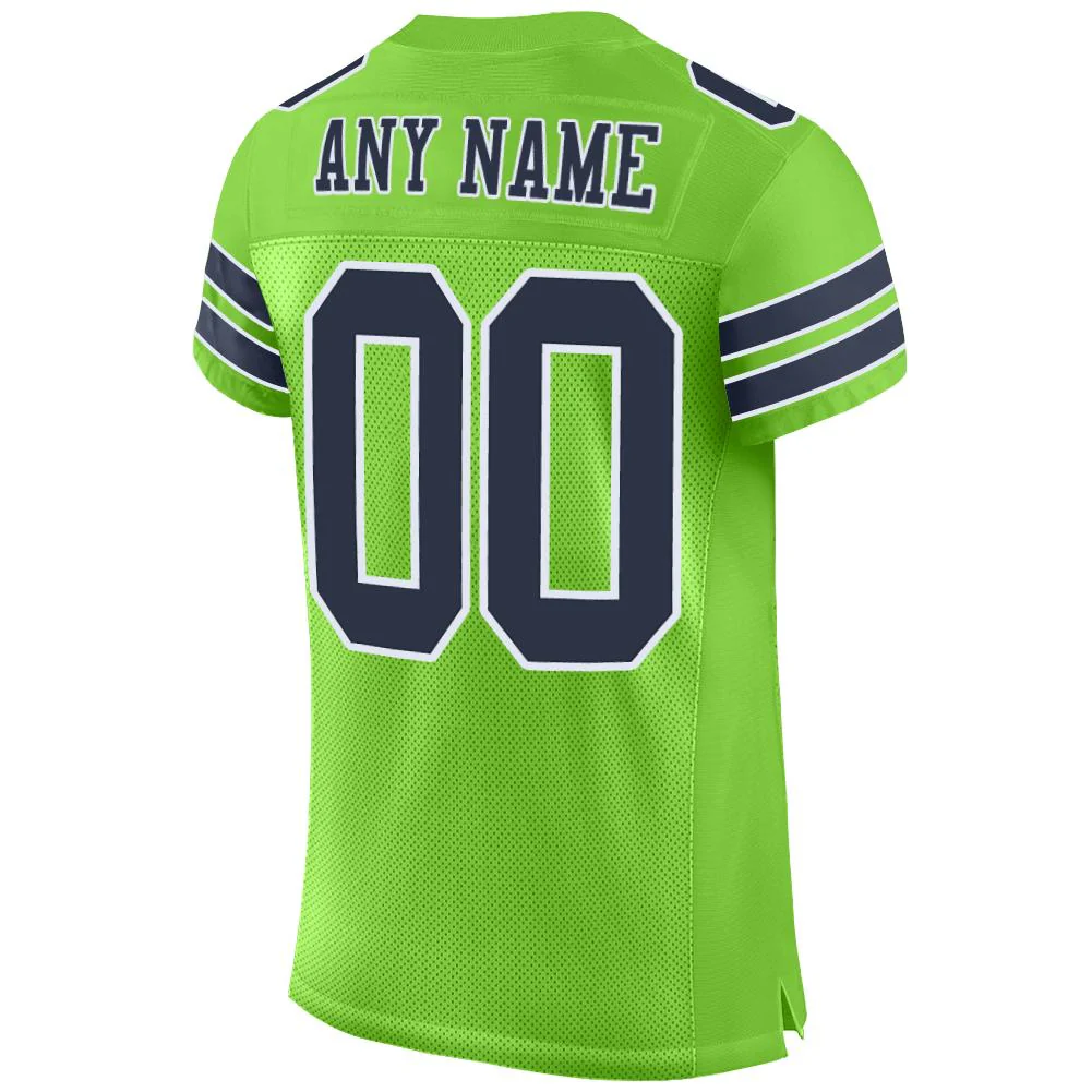 Custom Neon Green Navy-White Mesh Authentic Football Jersey