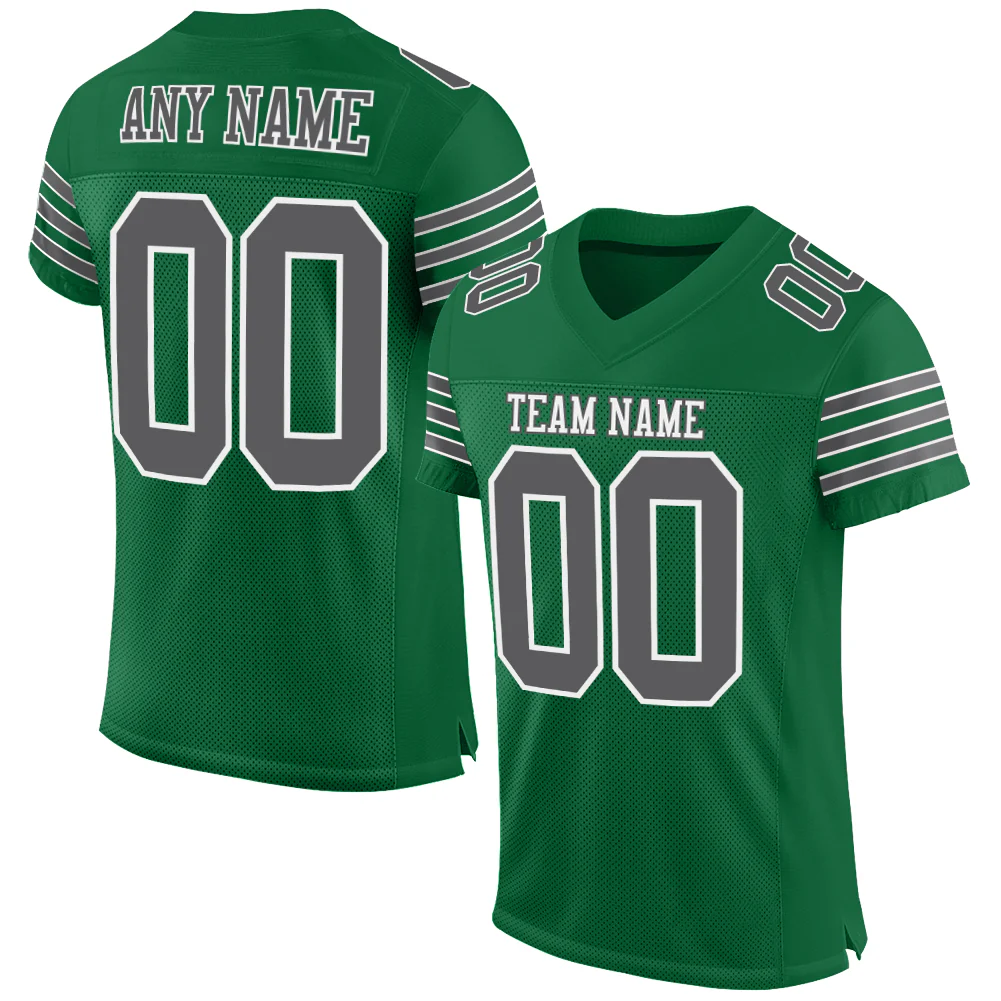 Custom Kelly Green Steel Gray-White Mesh Authentic Football Jersey