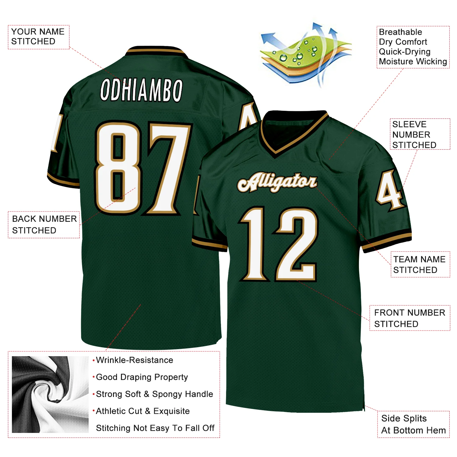 Custom Green Gold-White Mesh Authentic Football Jersey