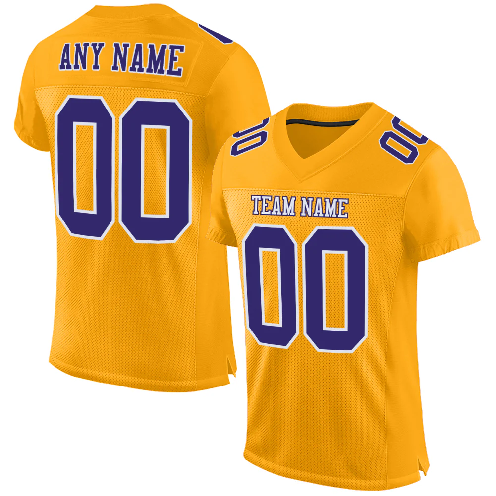 Custom Gold Purple-White Mesh Authentic Football Jersey