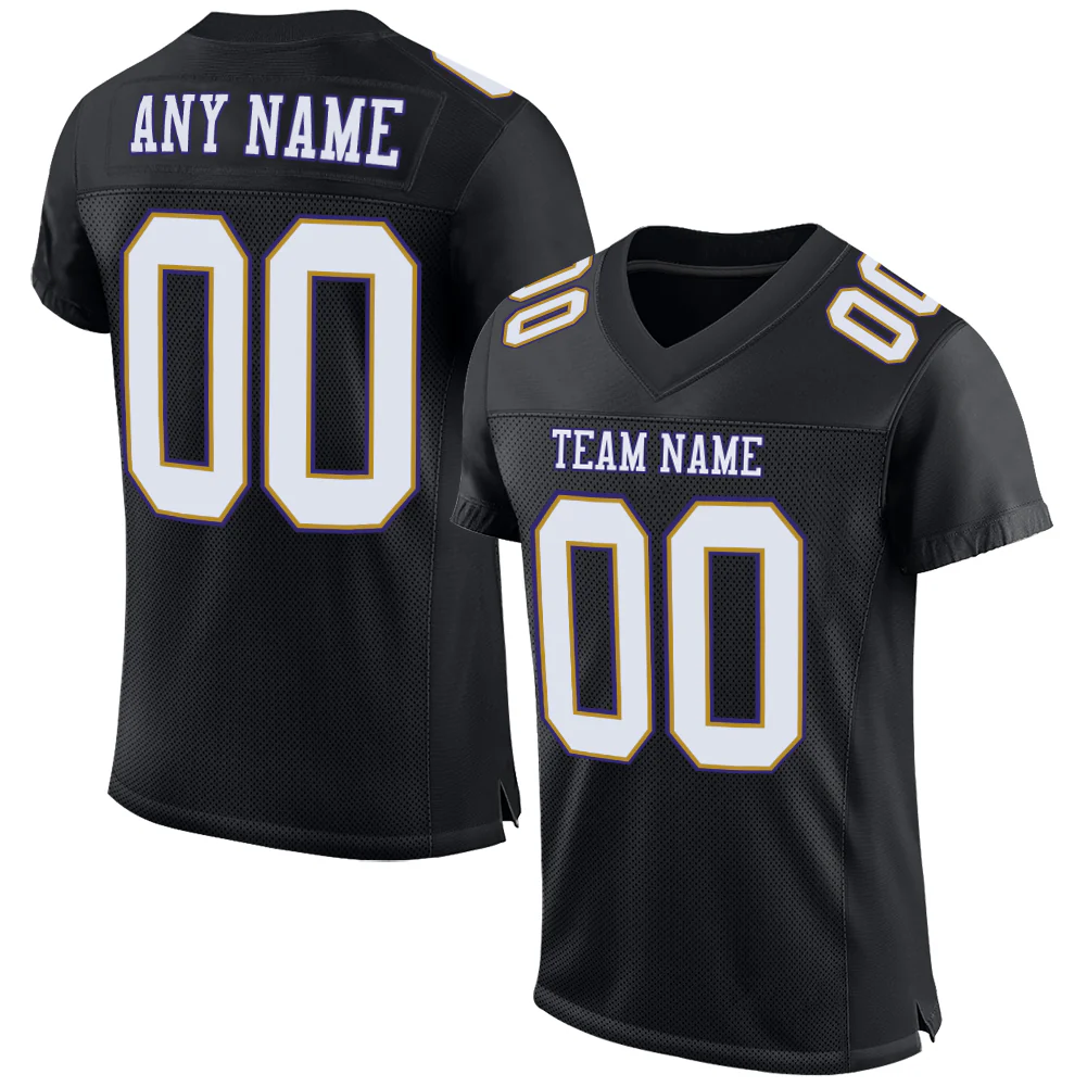 Custom Black White Old Gold-Purple Mesh Authentic Football Jersey