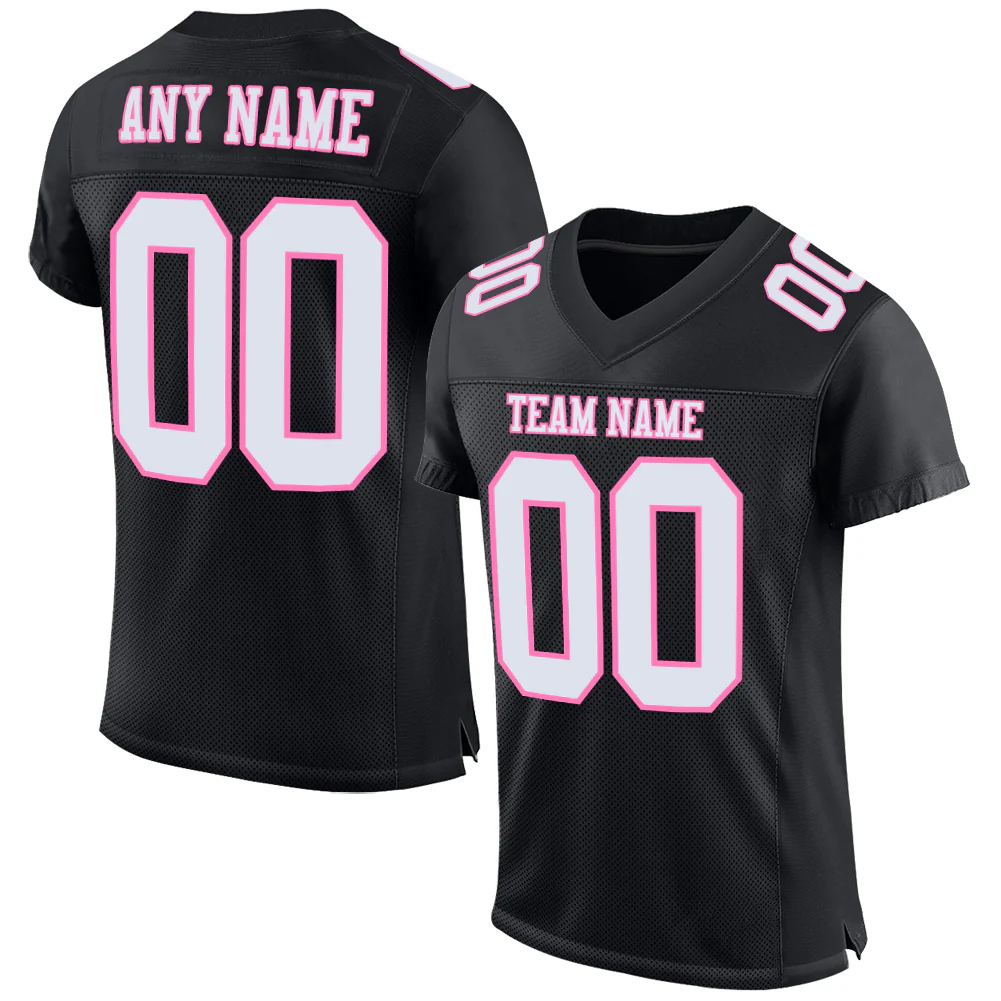 Custom Black White-Pink Mesh Authentic Football Jersey