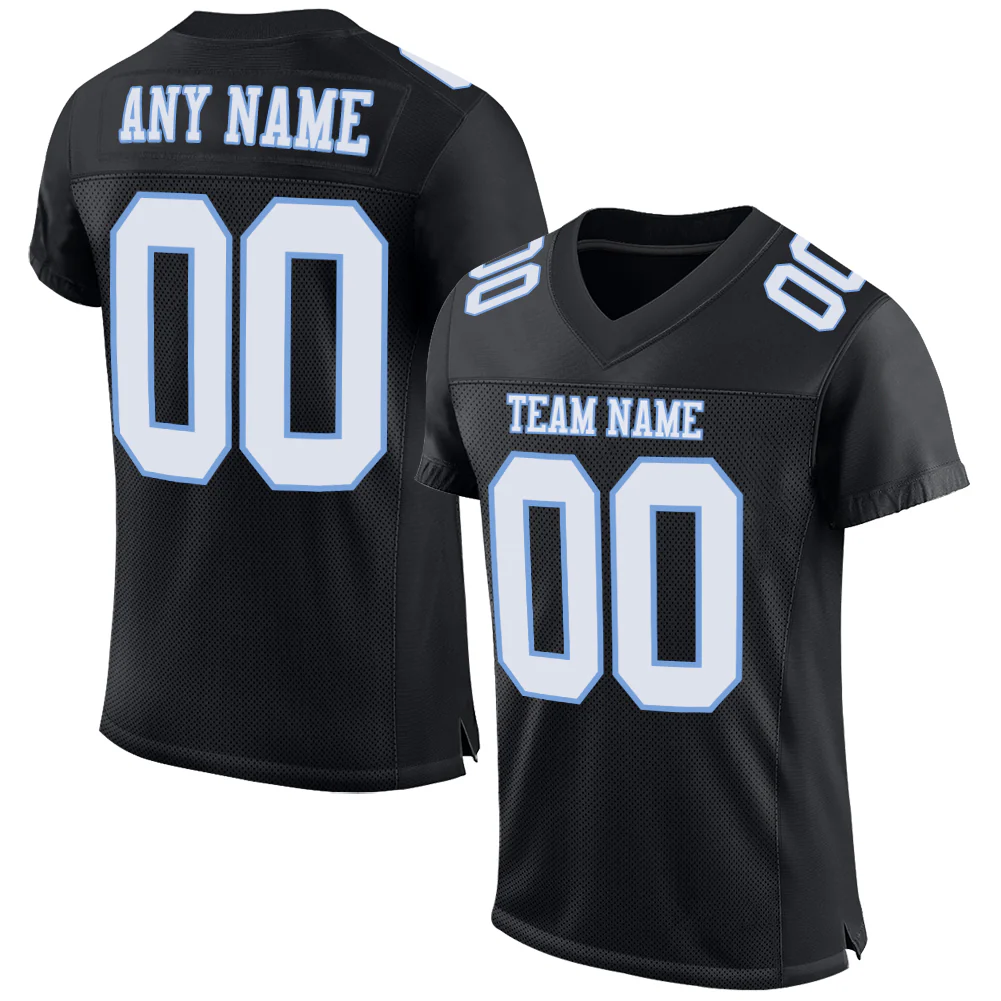 Custom Black White-Light Blue Mesh Authentic Football Jersey