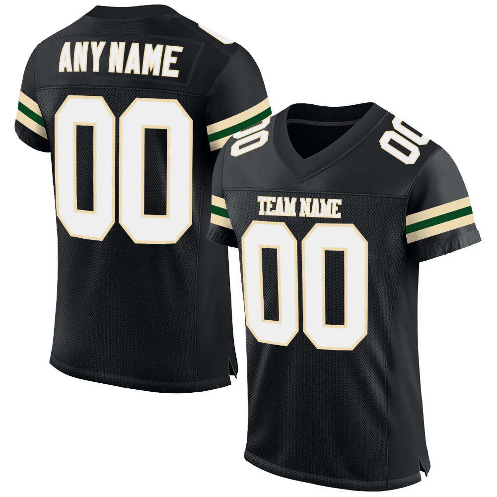Custom Black White-Cream Mesh Authentic Football Jersey