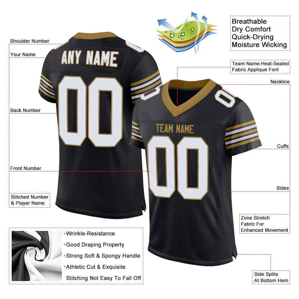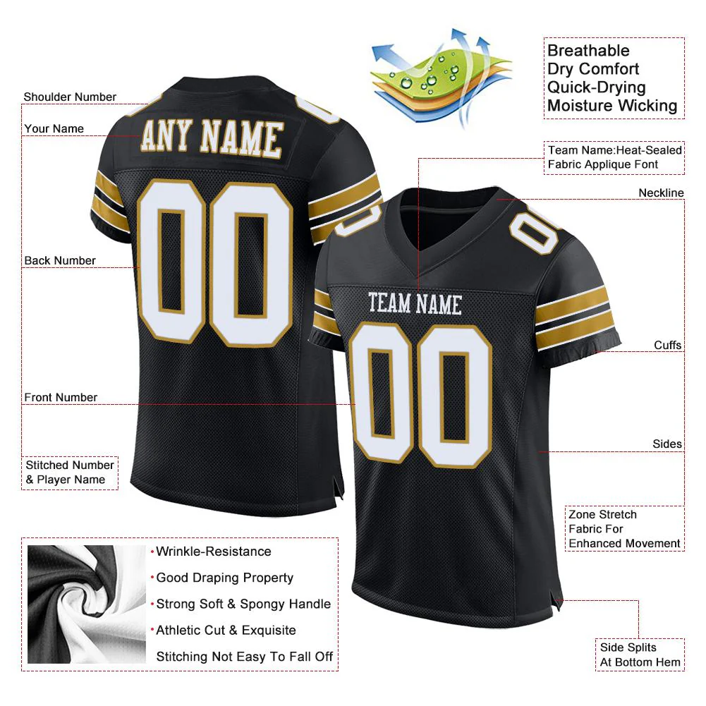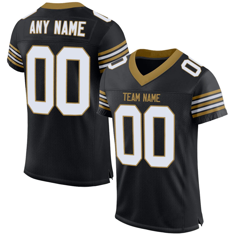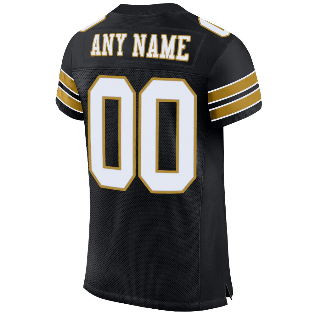 Custom Black White-Old Gold Mesh Authentic Football Jersey