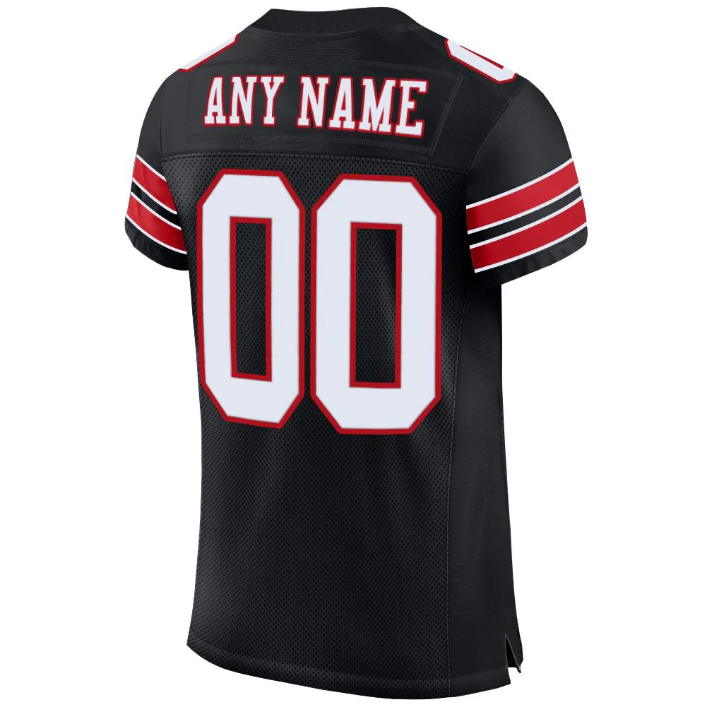Custom Black Scarlet-Gold Mesh Authentic Football Jersey