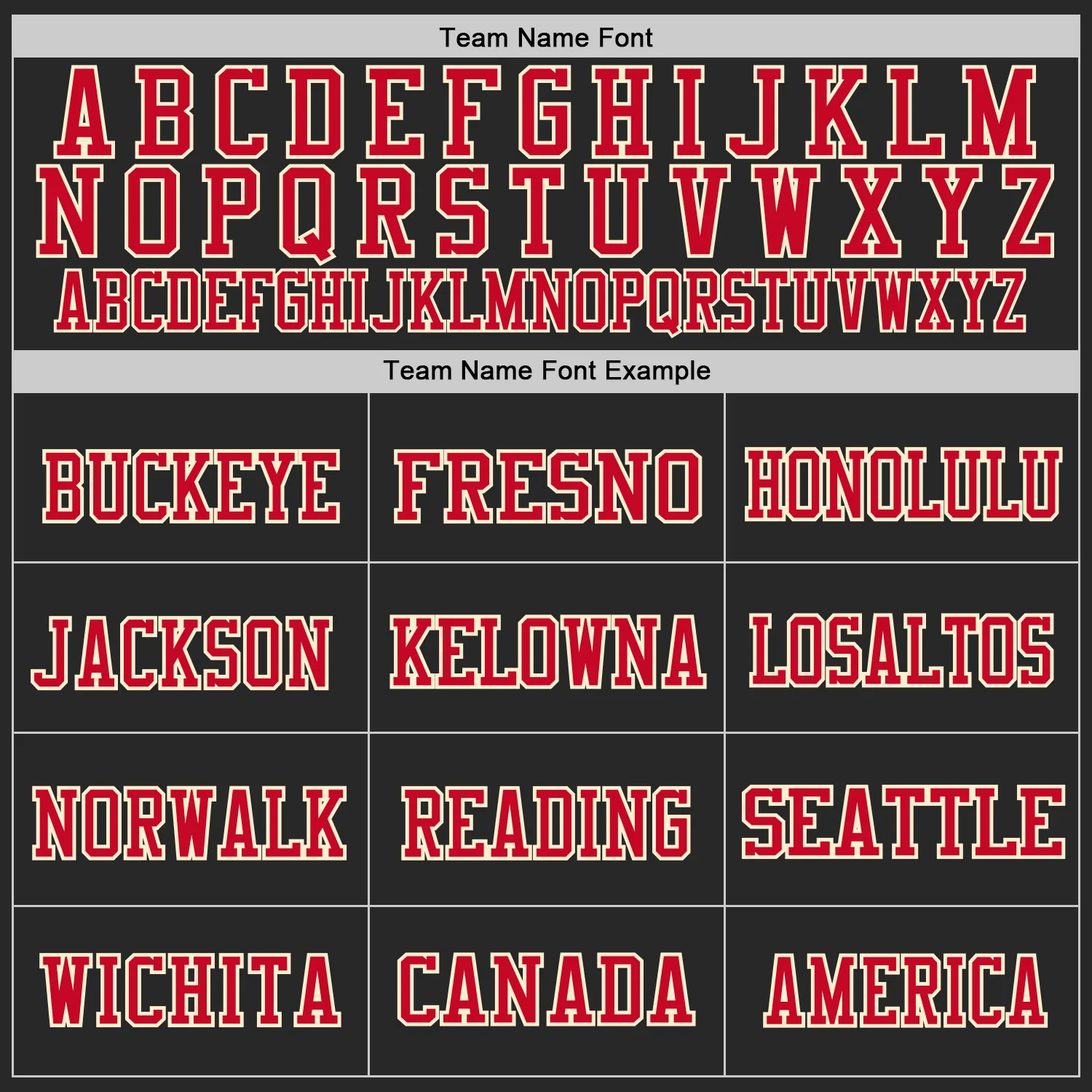 Custom Black Red-Cream Mesh Authentic Throwback Football Jersey