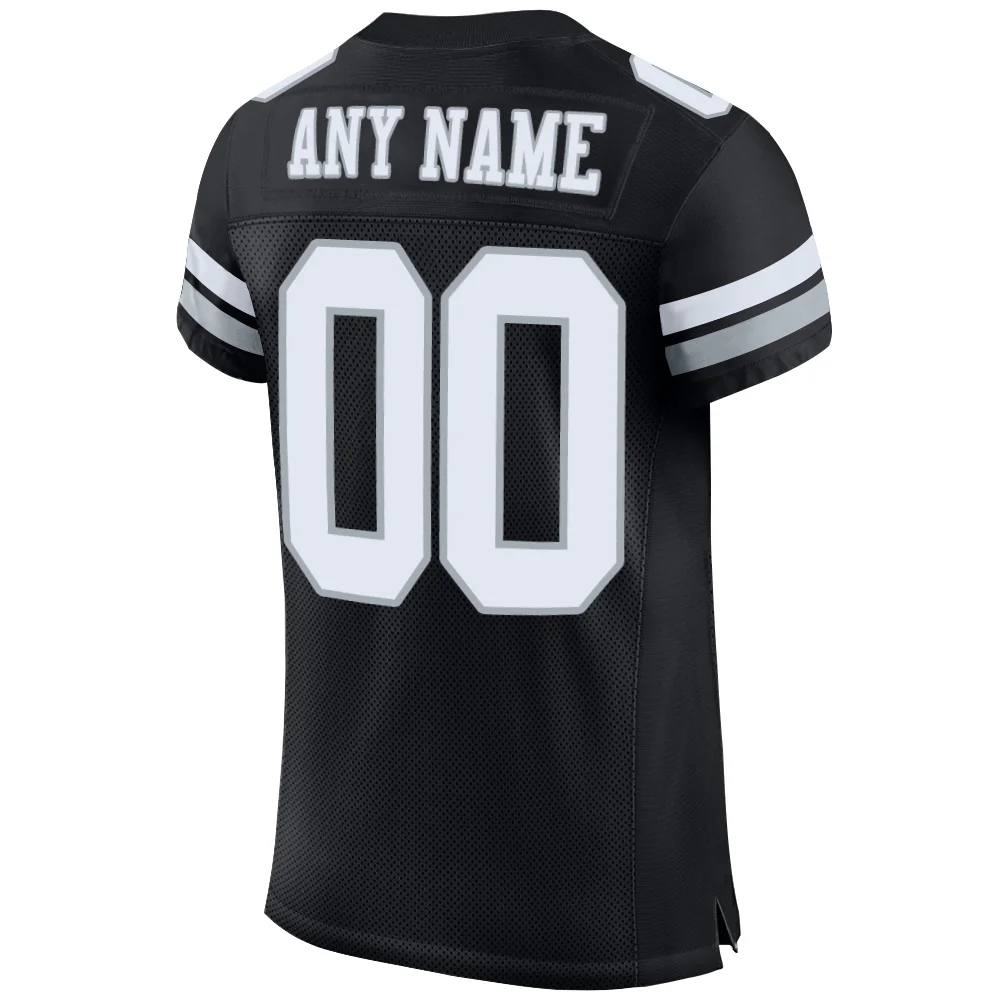 Custom Black White-Silver Mesh Authentic Football Jersey