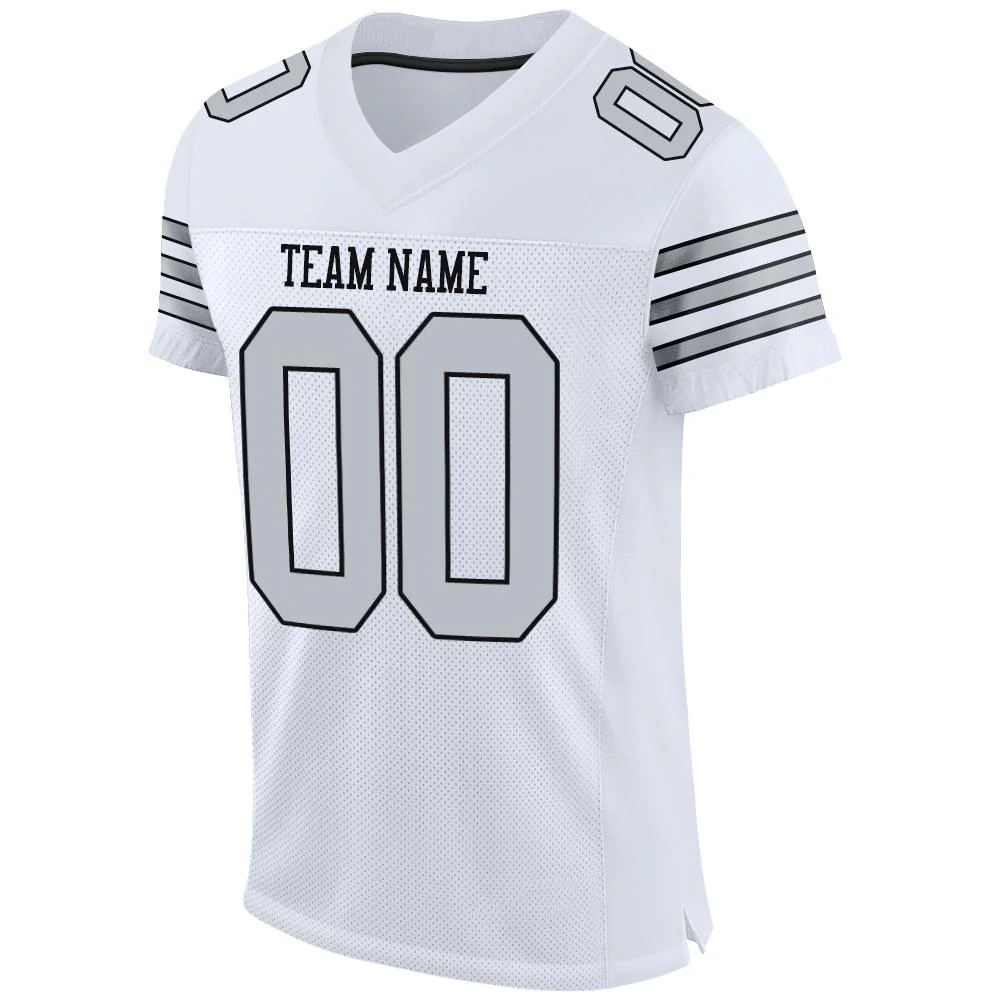 Custom White Silver-Black Mesh Authentic Football Jersey
