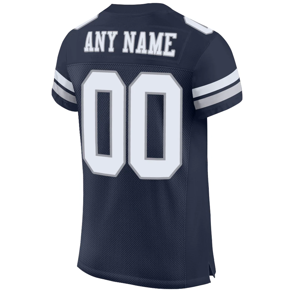 Custom Navy White-Light Gray Mesh Authentic Football Jersey