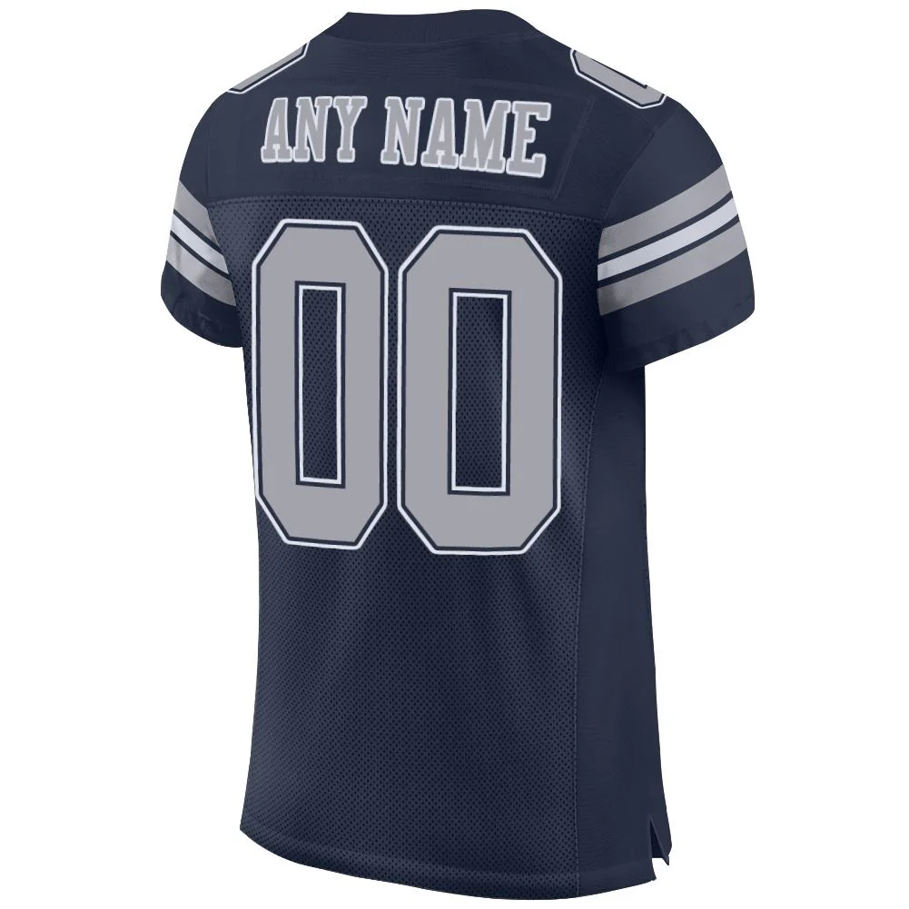 Custom Navy Gray-White Mesh Authentic Football Jersey