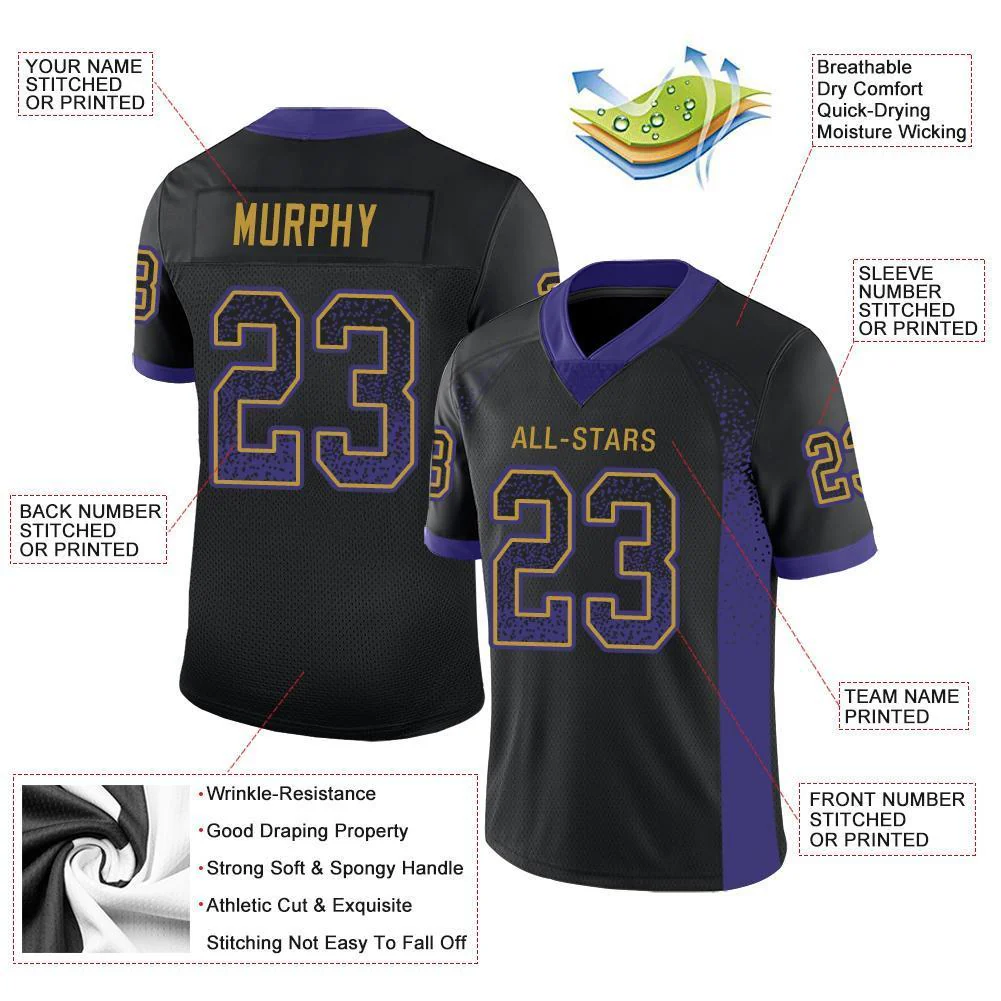 Custom Black Purple-Old Gold Drift Fashion Football Jersey