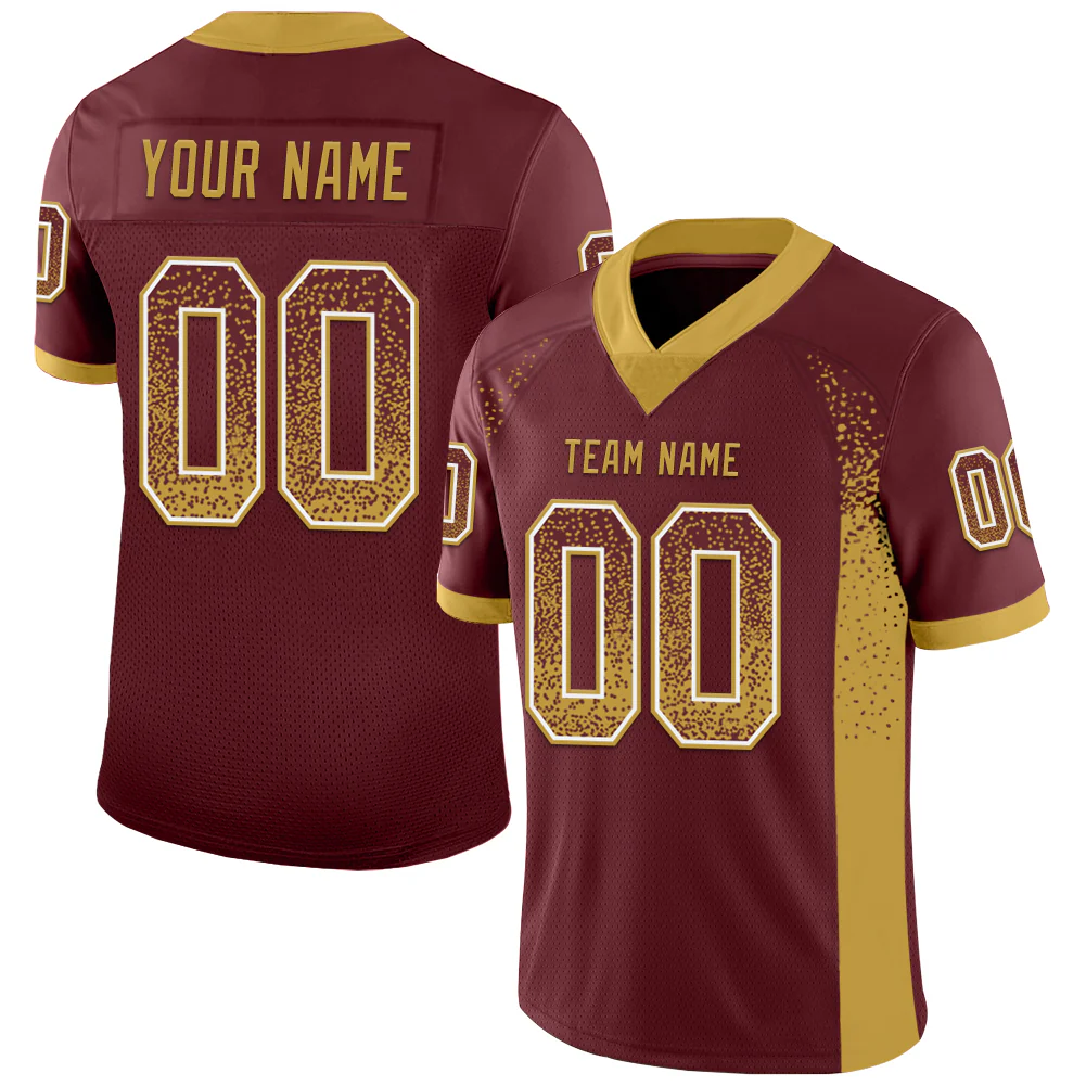 Custom Burgundy Old Gold-White Drift Fashion Football Jersey