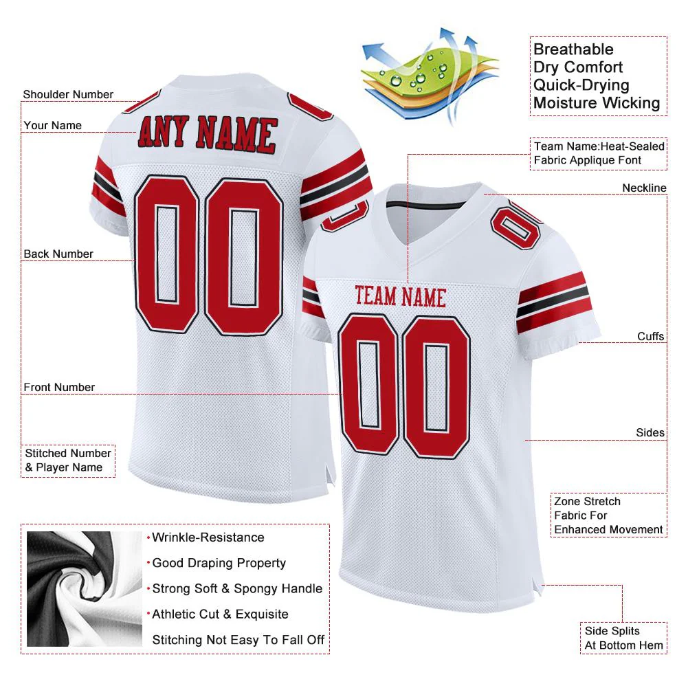 Custom Black White-Scarlet Mesh Authentic Football Jersey