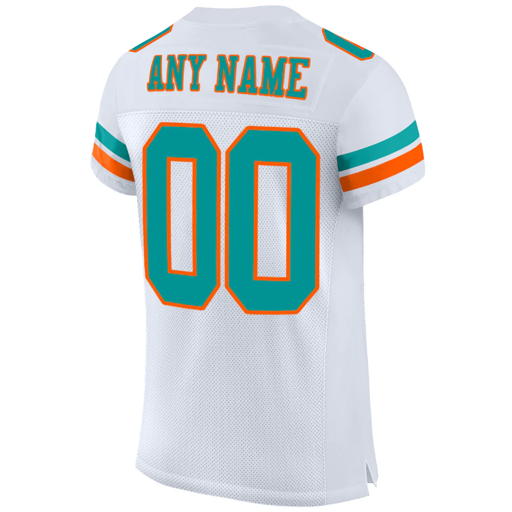 Custom White Aqua-Orange Mesh Authentic Football Jersey