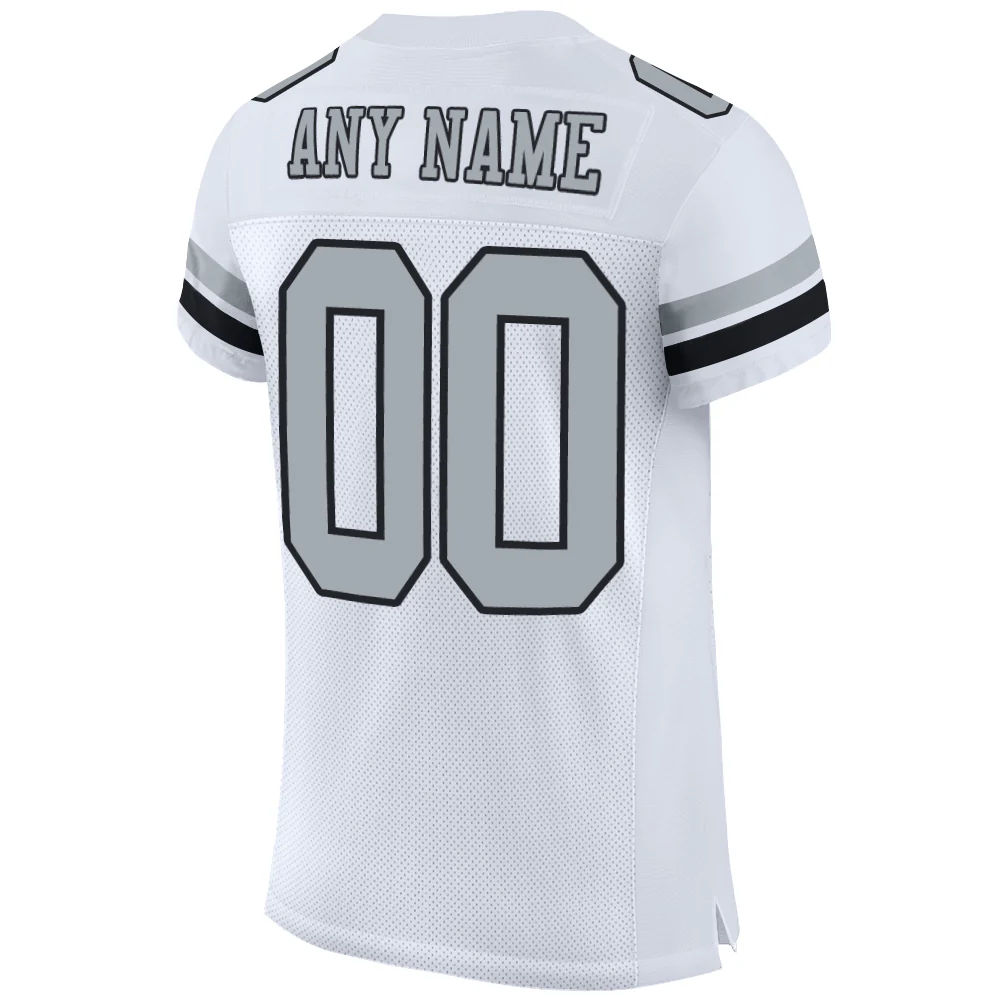 Custom White Silver-Black Mesh Authentic Football Jersey