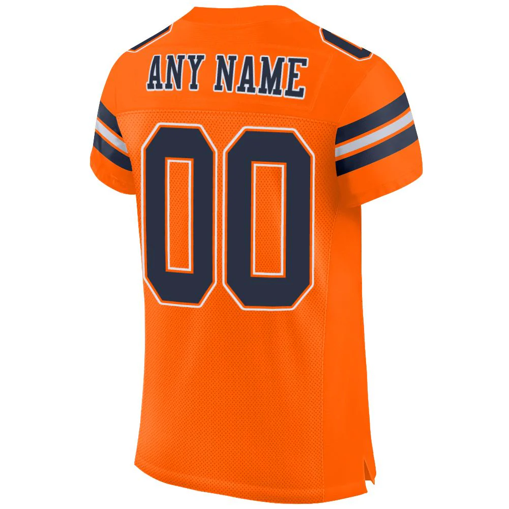 Custom Orange Navy-White Mesh Authentic Football Jersey