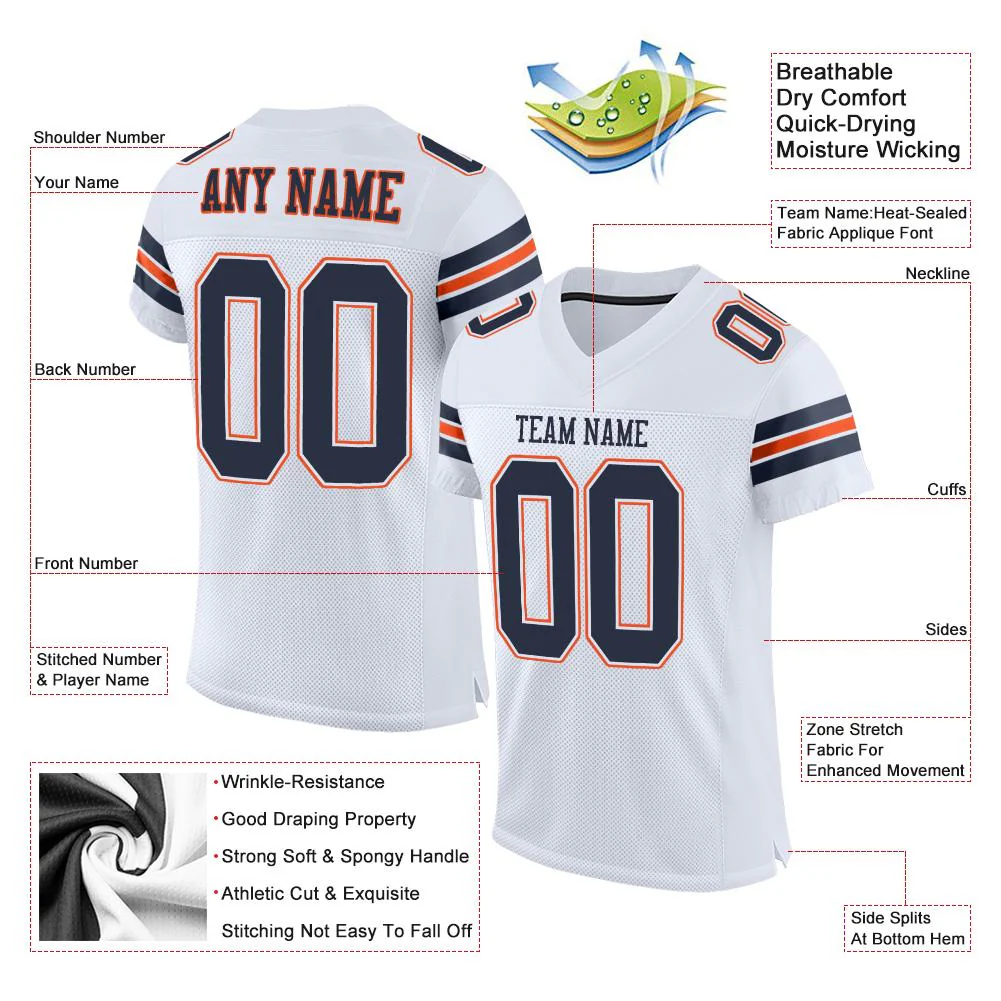 Custom White Navy-Orange Mesh Authentic Football Jersey