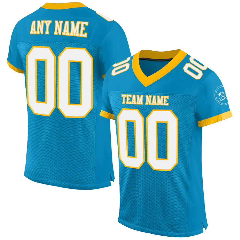 Custom Powder Blue White-Gold Mesh Authentic Football Jersey