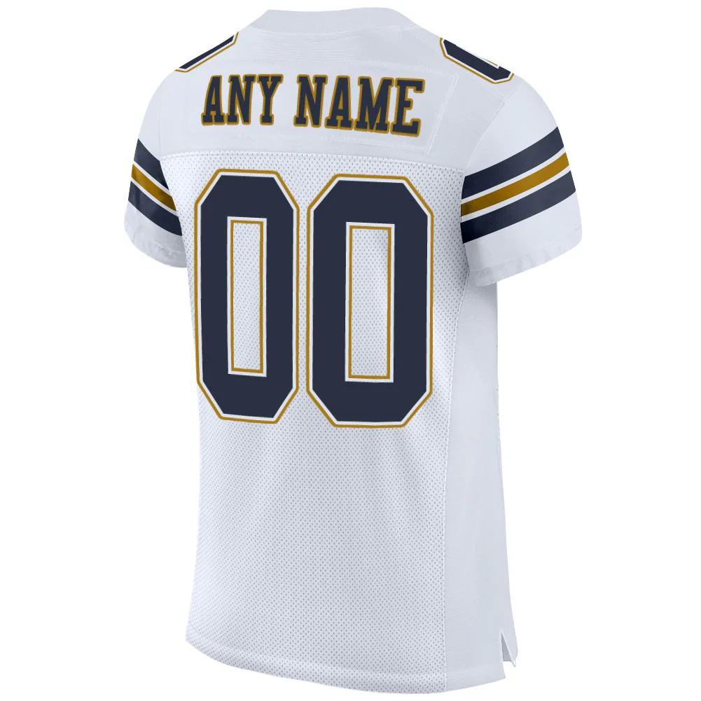 Custom White Navy-Old Gold Mesh Authentic Football Jersey
