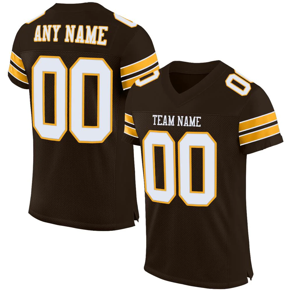 Custom Brown White-Gold Mesh Authentic Football Jersey