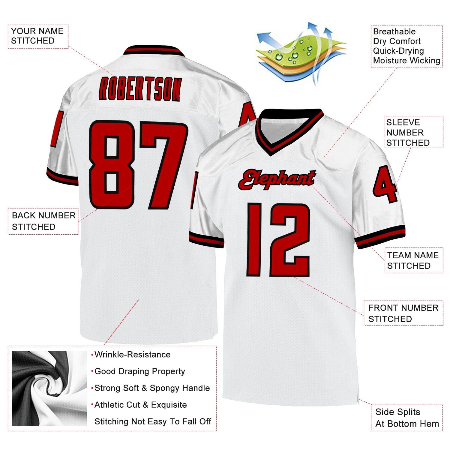Custom Red White Mesh Authentic Football Jersey
