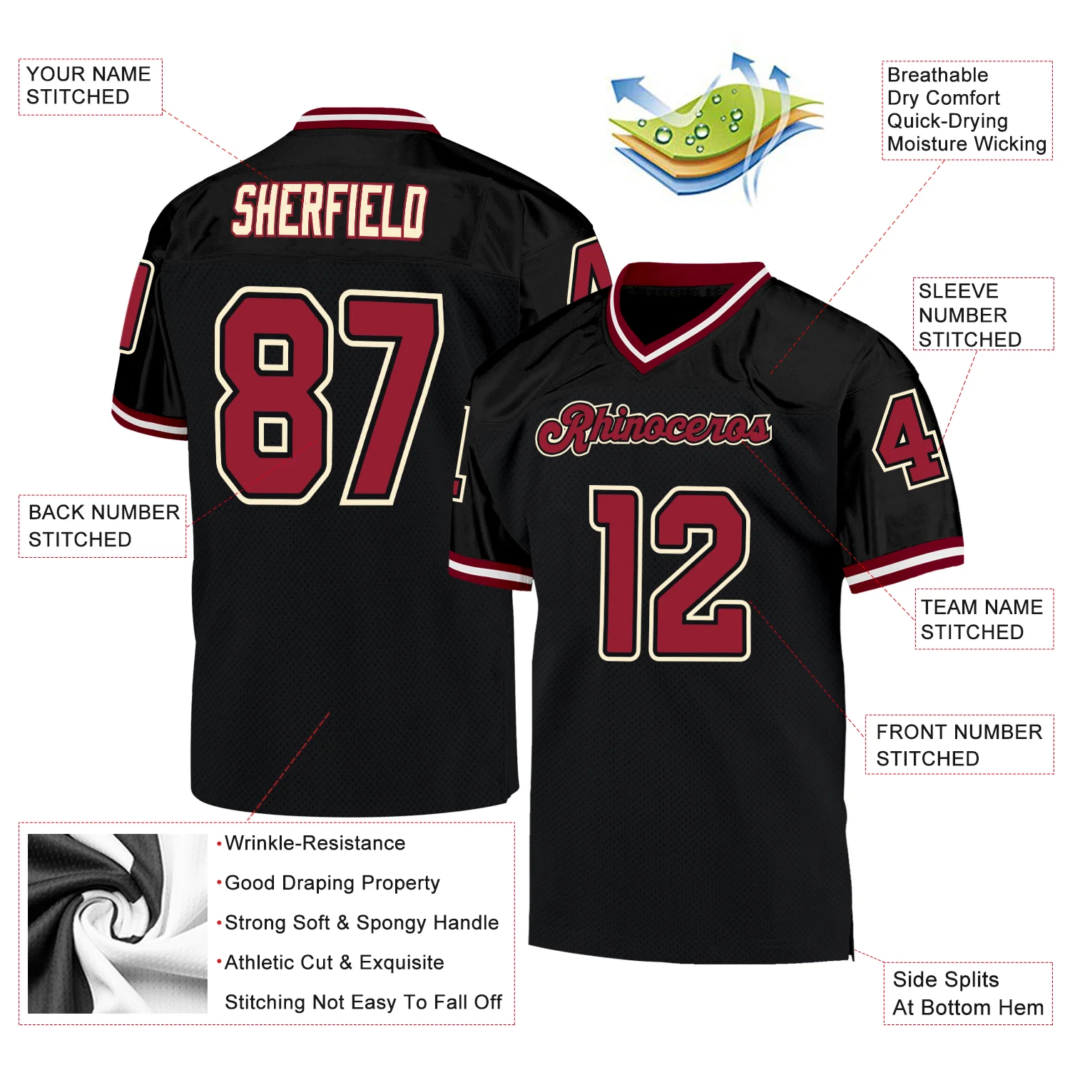 Custom Black Cardinal-Cream Mesh Authentic Throwback Football Jersey