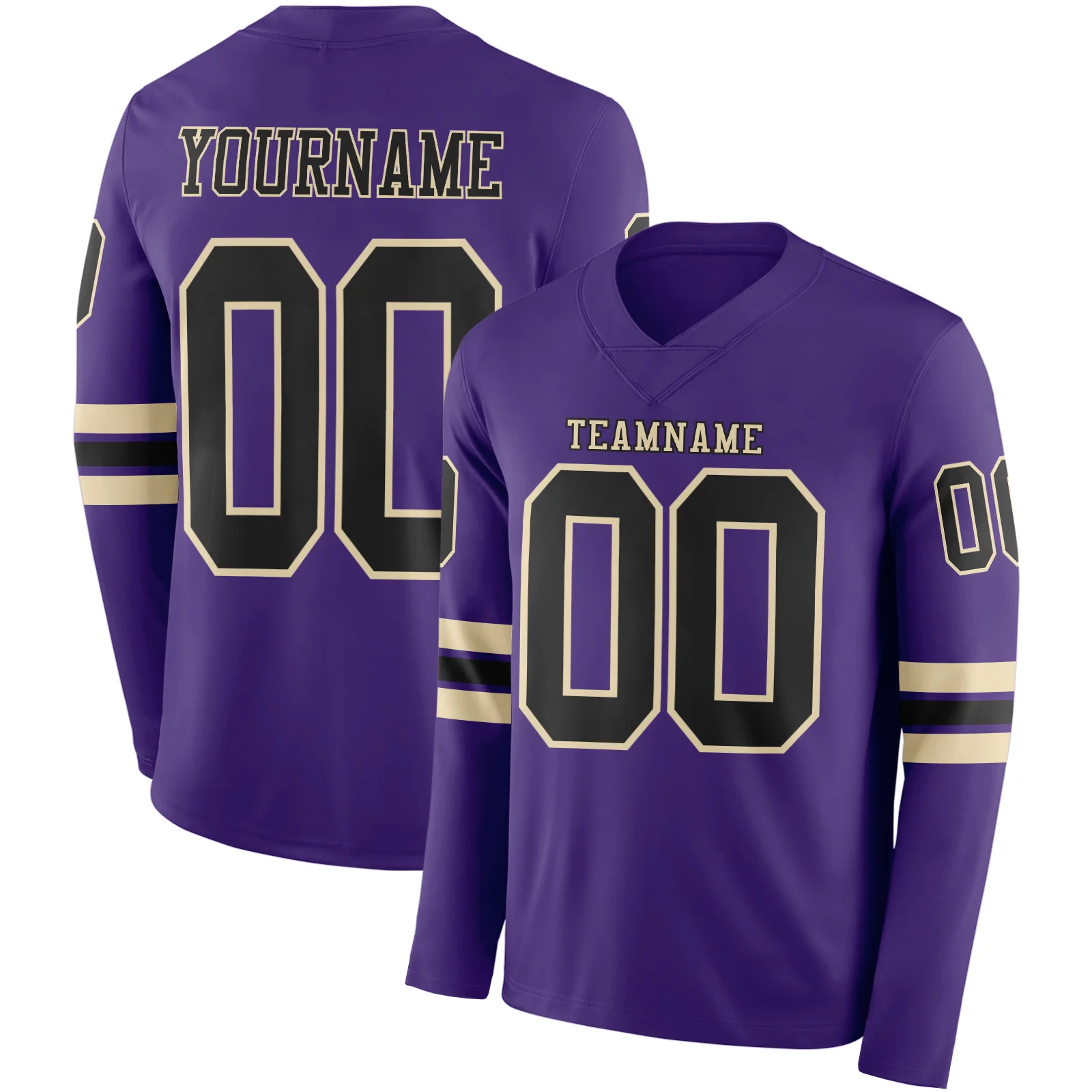 Custom Purple Black-Cream Long Sleeve Authentic Football Jersey