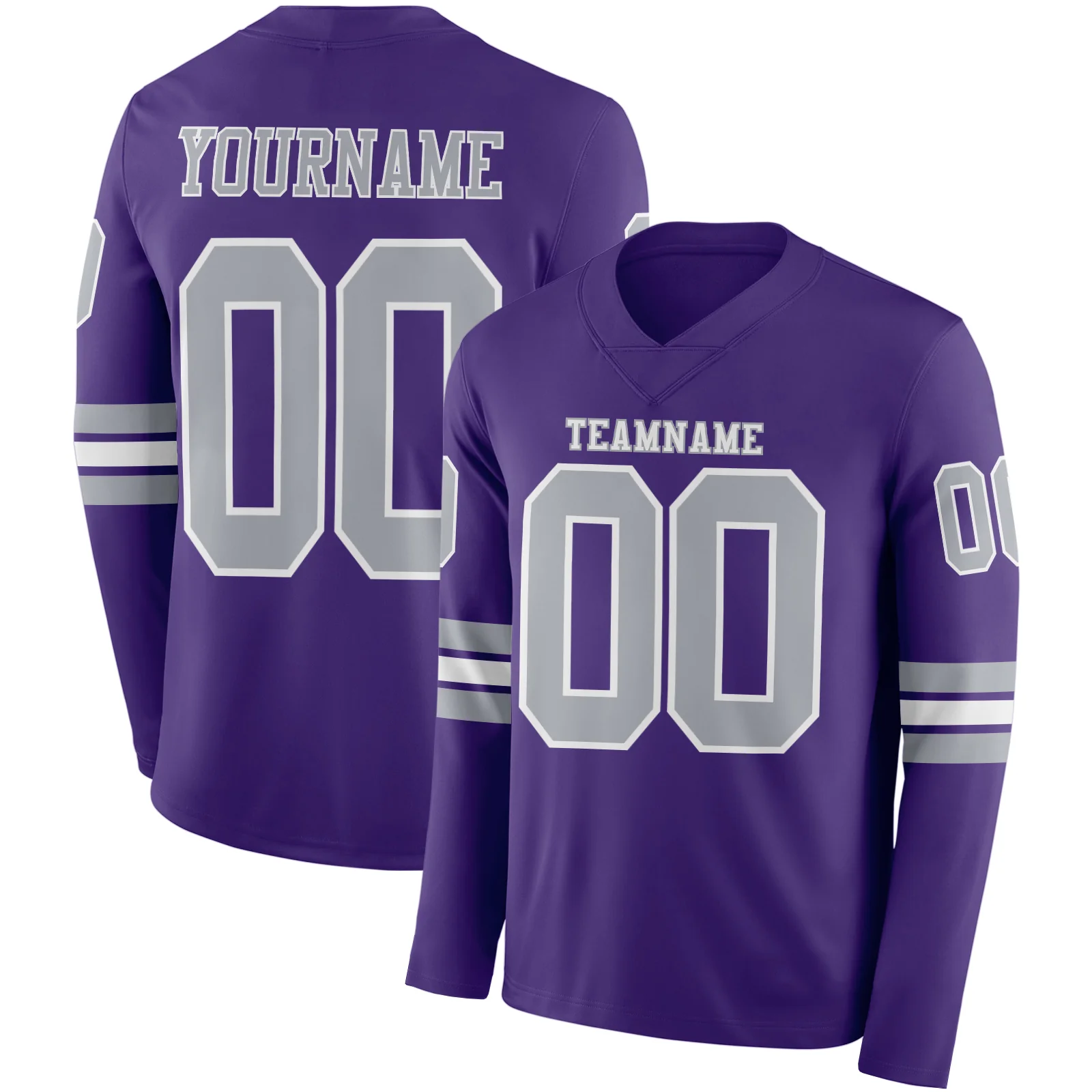 Custom Purple Gray-White Long Sleeve Authentic Football Jersey