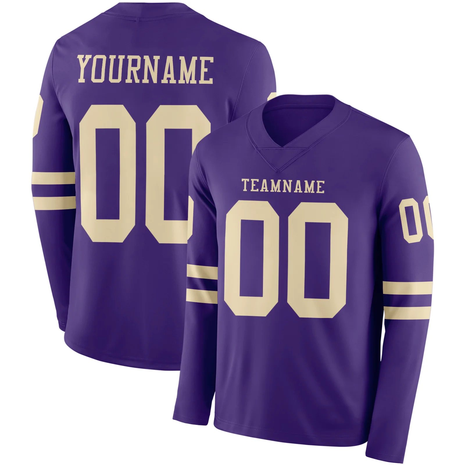 Custom Purple Cream Long Sleeve Authentic Football Jersey