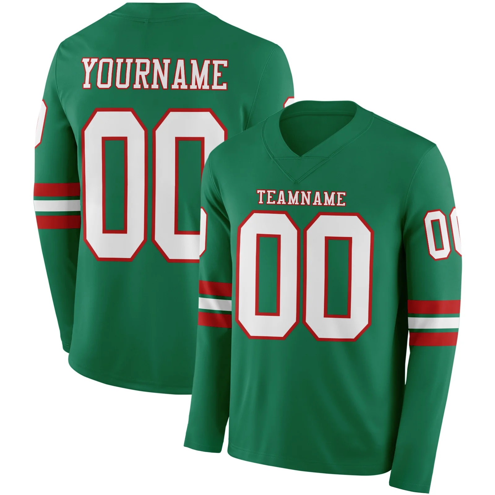 Custom Kelly Green White-Red Long Sleeve Authentic Football Jersey