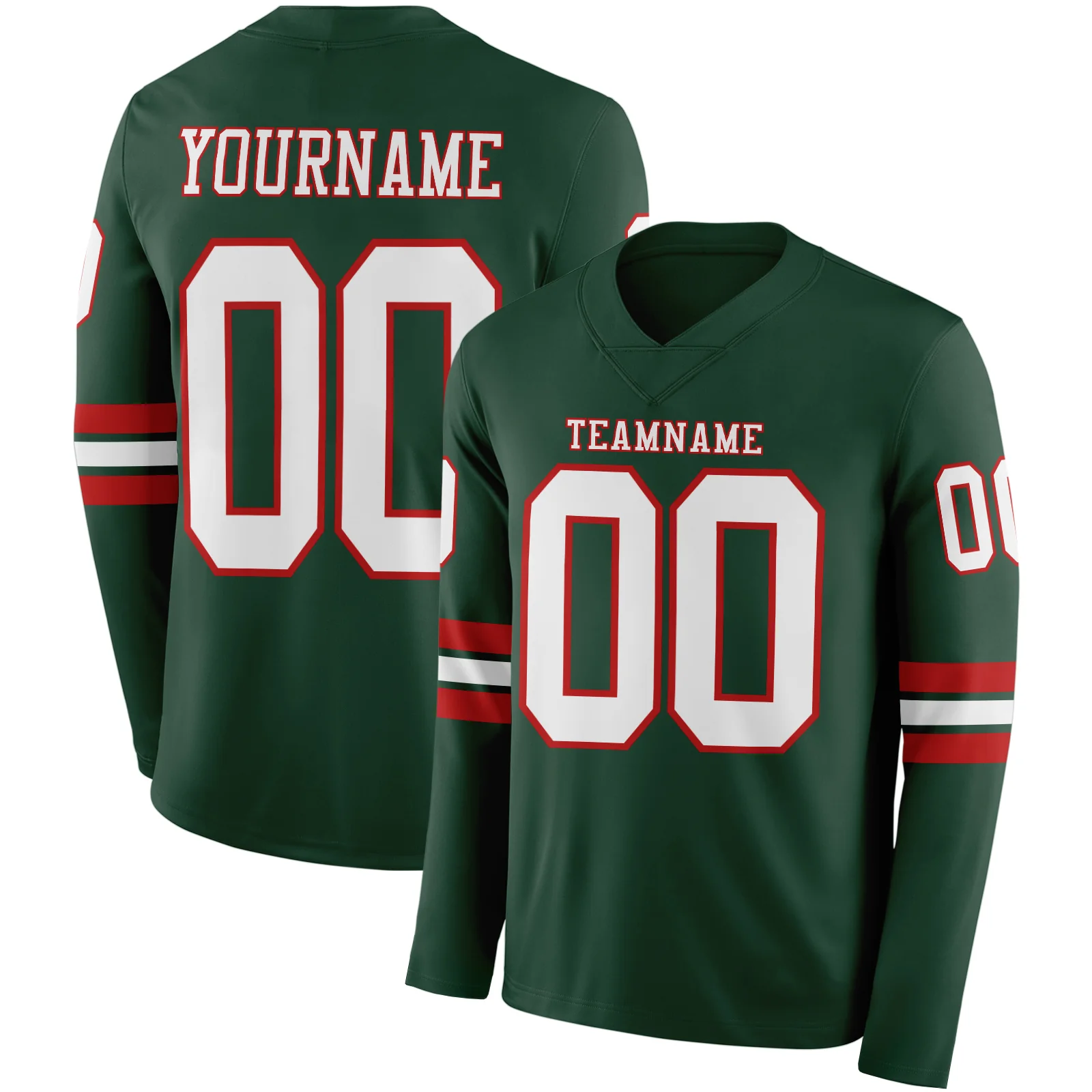 Custom Green Red-White Long Sleeve Authentic Football Jersey