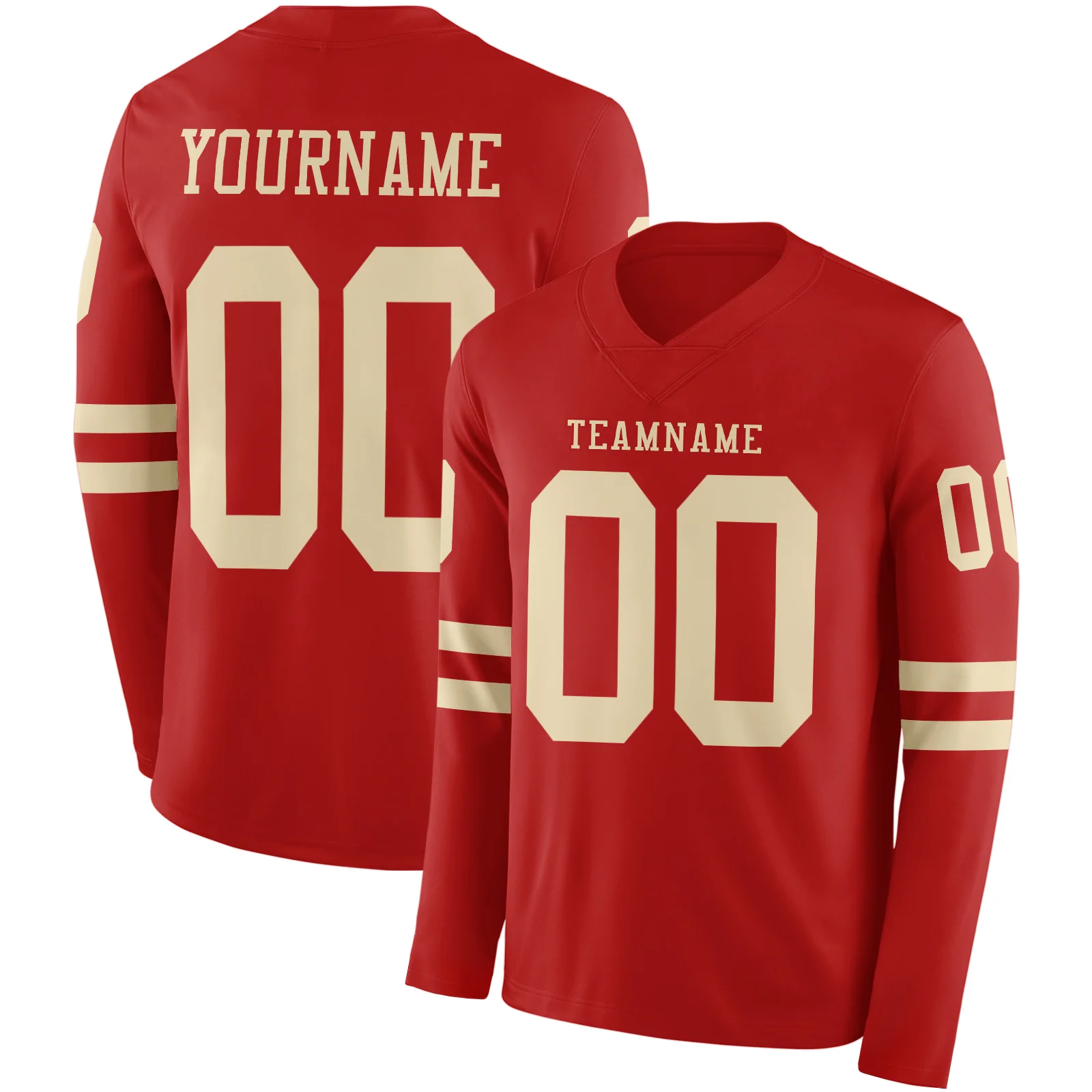 Custom Red Cream Long Sleeve Authentic Football Jersey