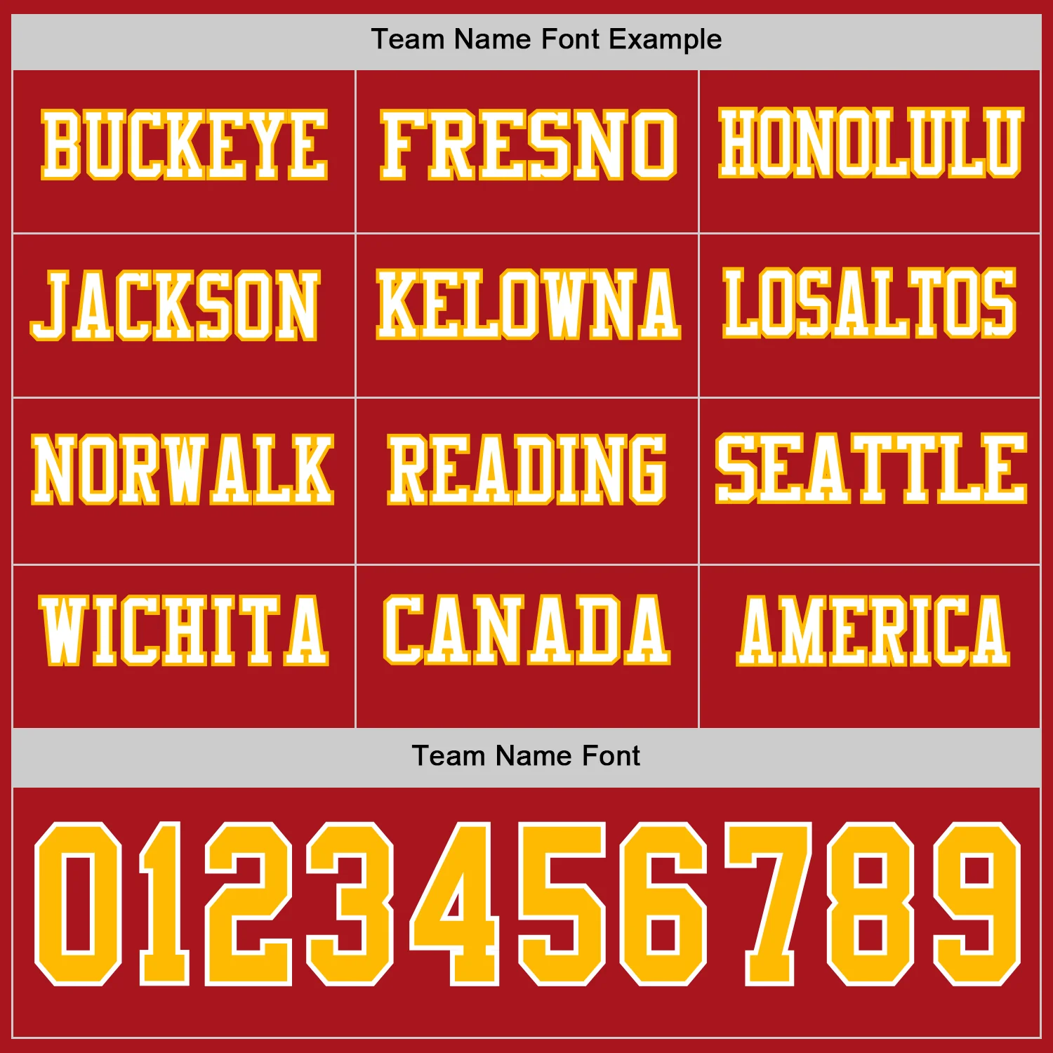 Custom Red Gold-White Long Sleeve Authentic Football Jersey