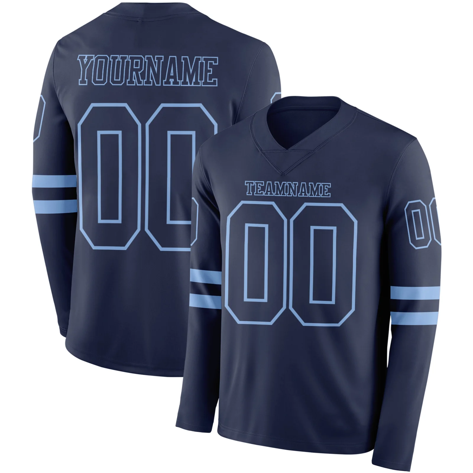 Custom Navy Light Blue Long Sleeve Authentic Football Jersey