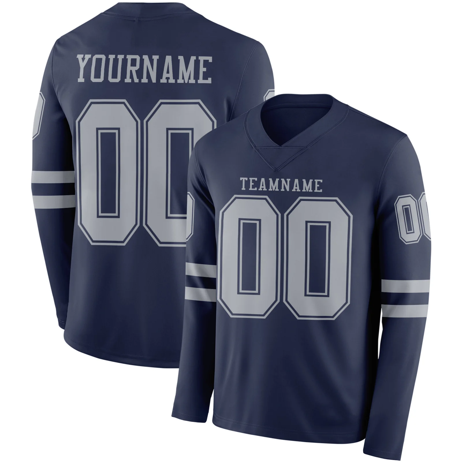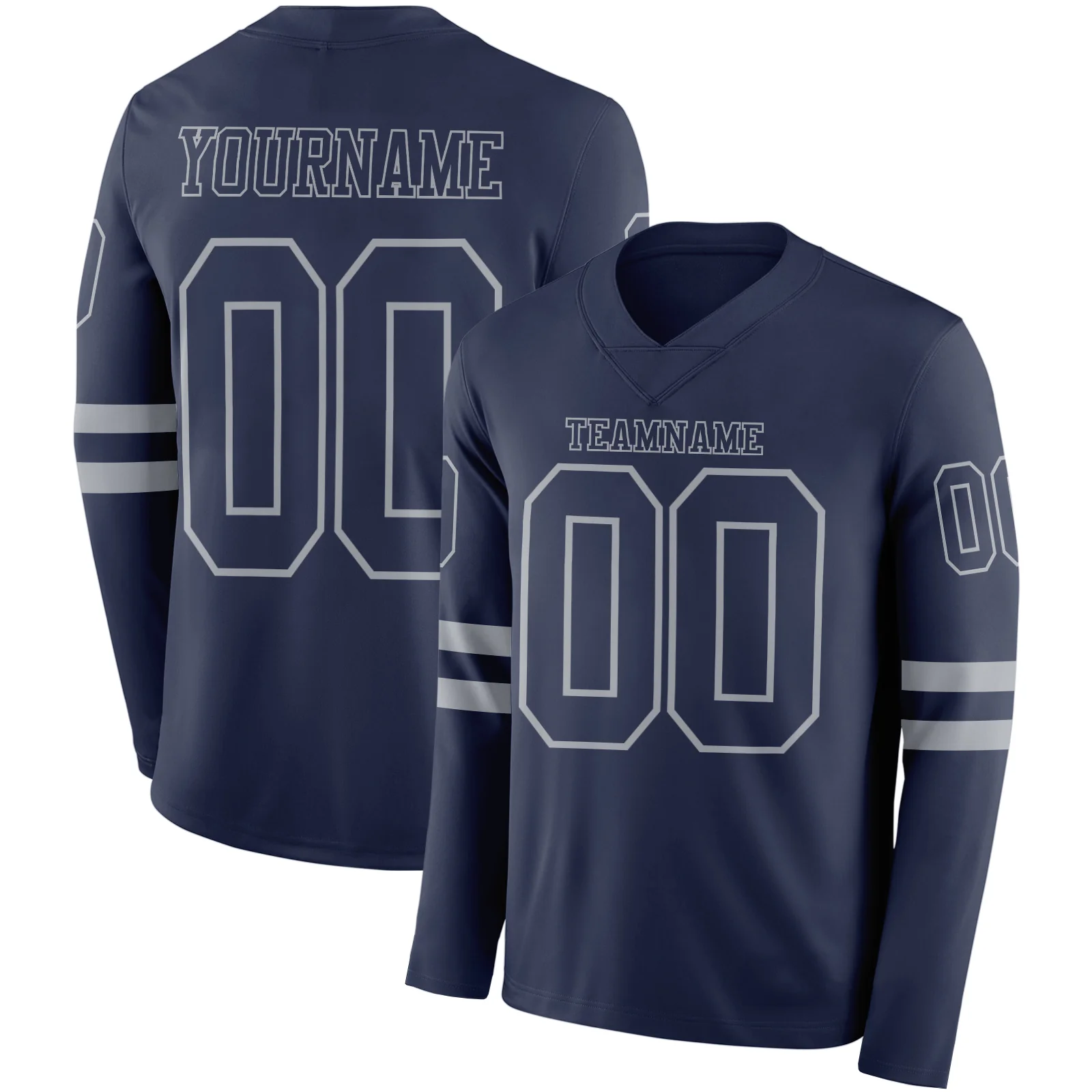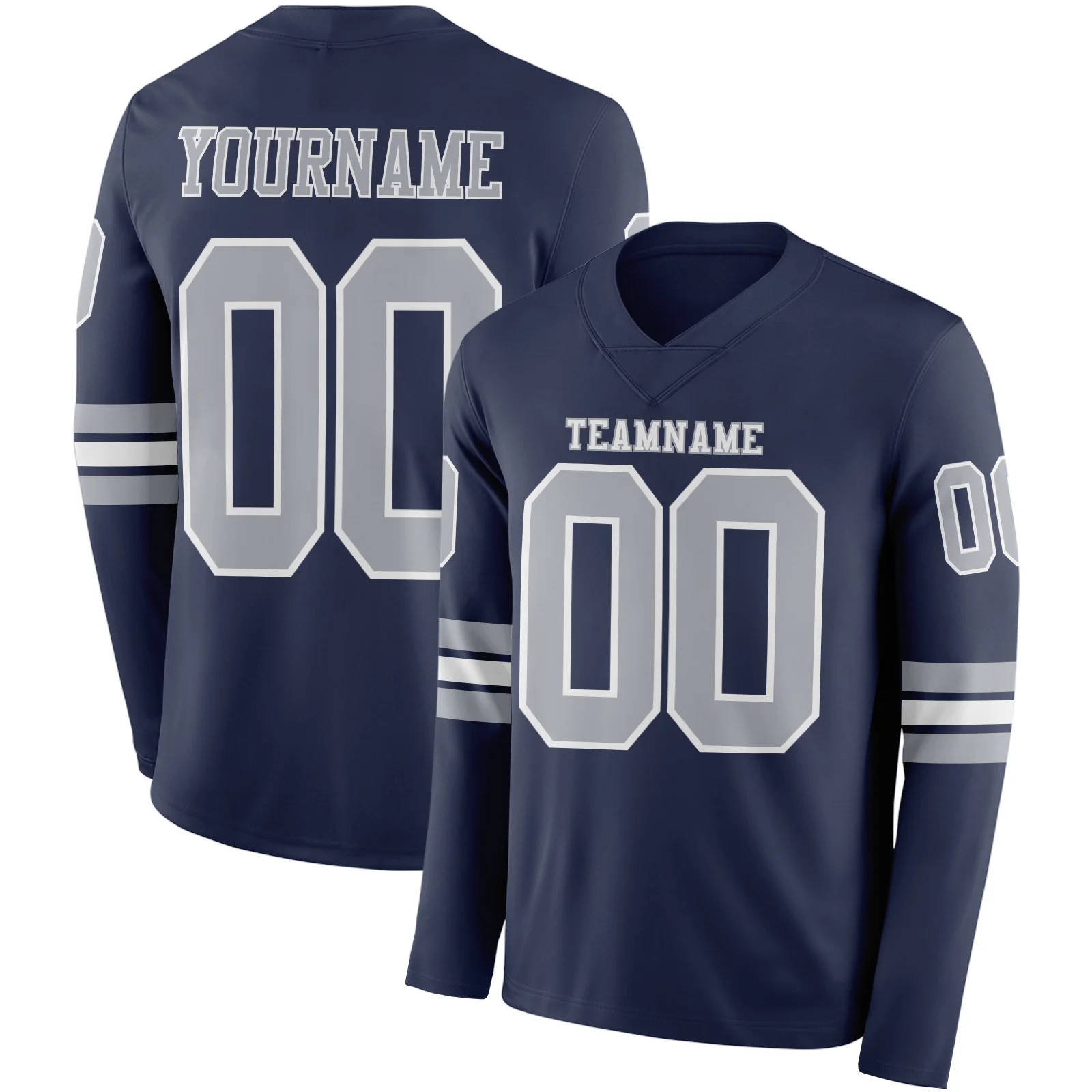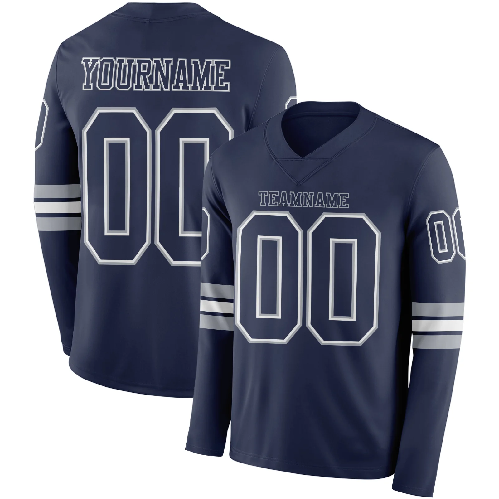 Custom Navy White-Gray Long Sleeve Authentic Football Jersey