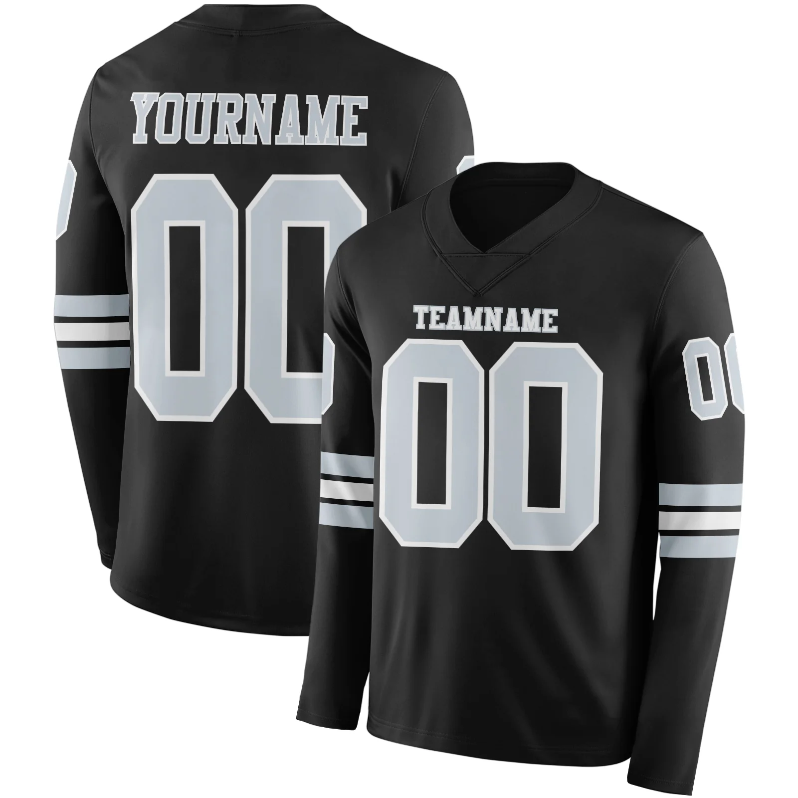 Custom Black Silver-White Long Sleeve Authentic Football Jersey