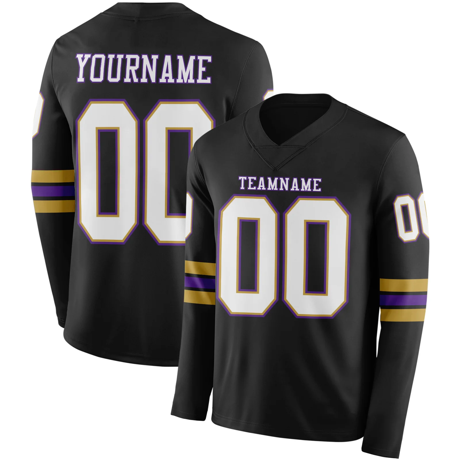Custom Black White Old Gold-Purple Long Sleeve Authentic Football Jersey