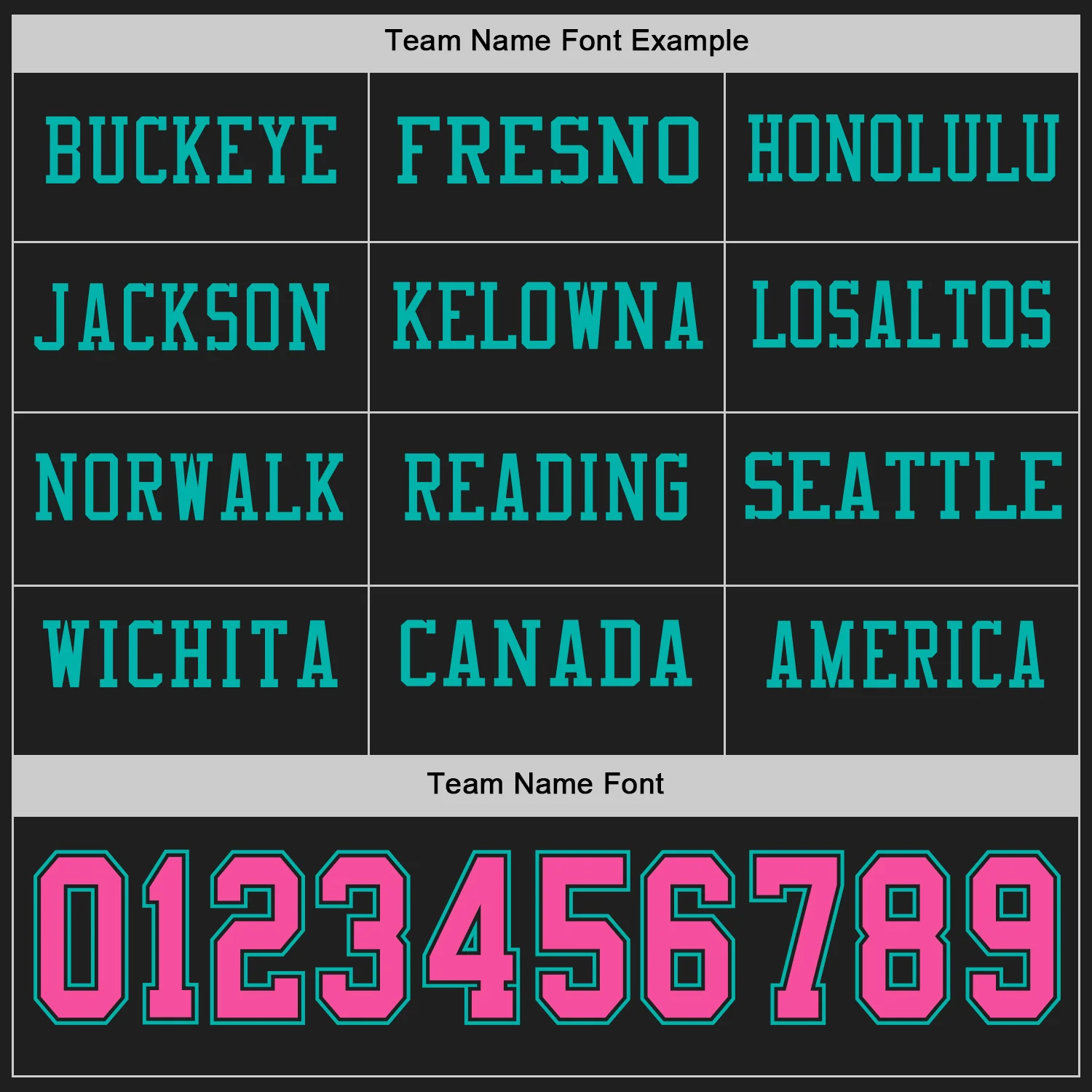 Custom Black Pink-Aqua Long Sleeve Authentic Football Jersey