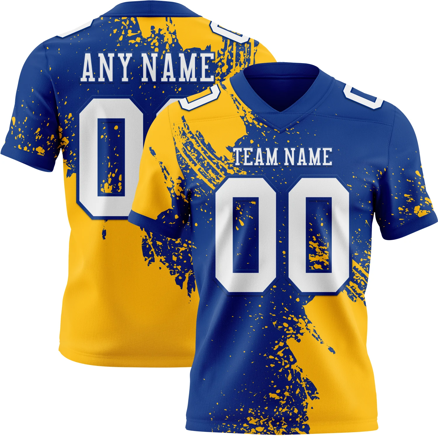 Custom Royal Yellow 3D Pattern Abstract Brush Stroke Authentic Football Jersey