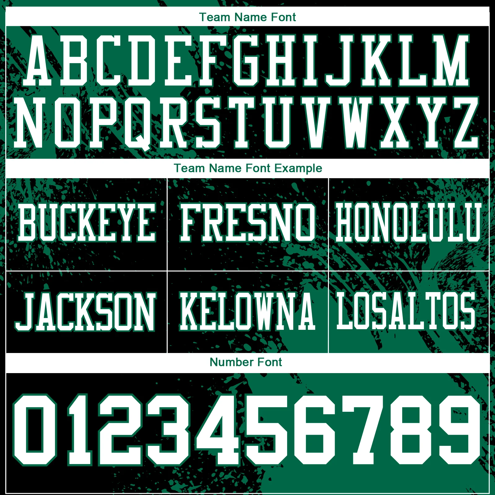 Custom Black White-Kelly Green 3D Pattern Abstract Brush Stroke Authentic Football Jersey