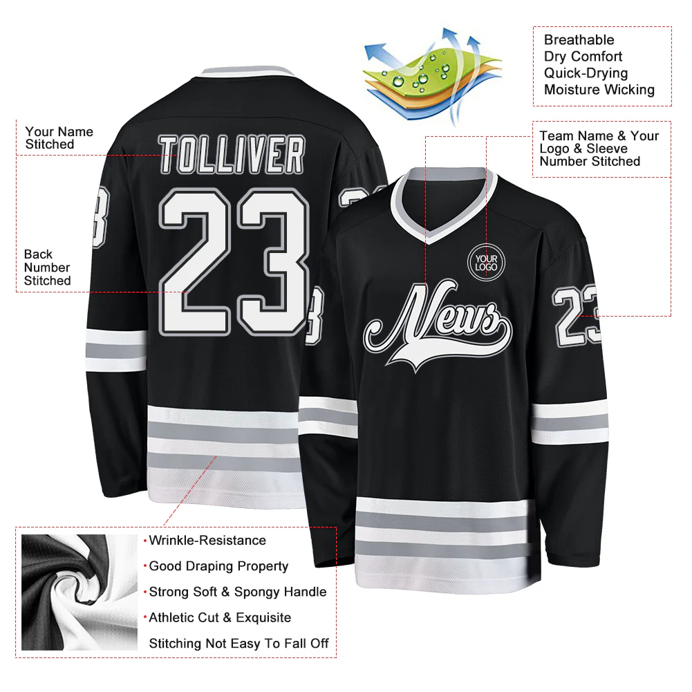 Custom Black White-Gray Hockey Jersey