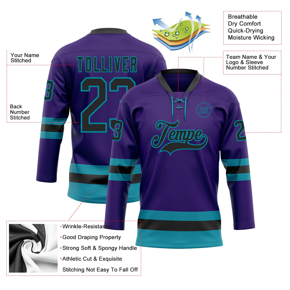 Custom Purple Black-Teal Hockey Lace Neck Jersey