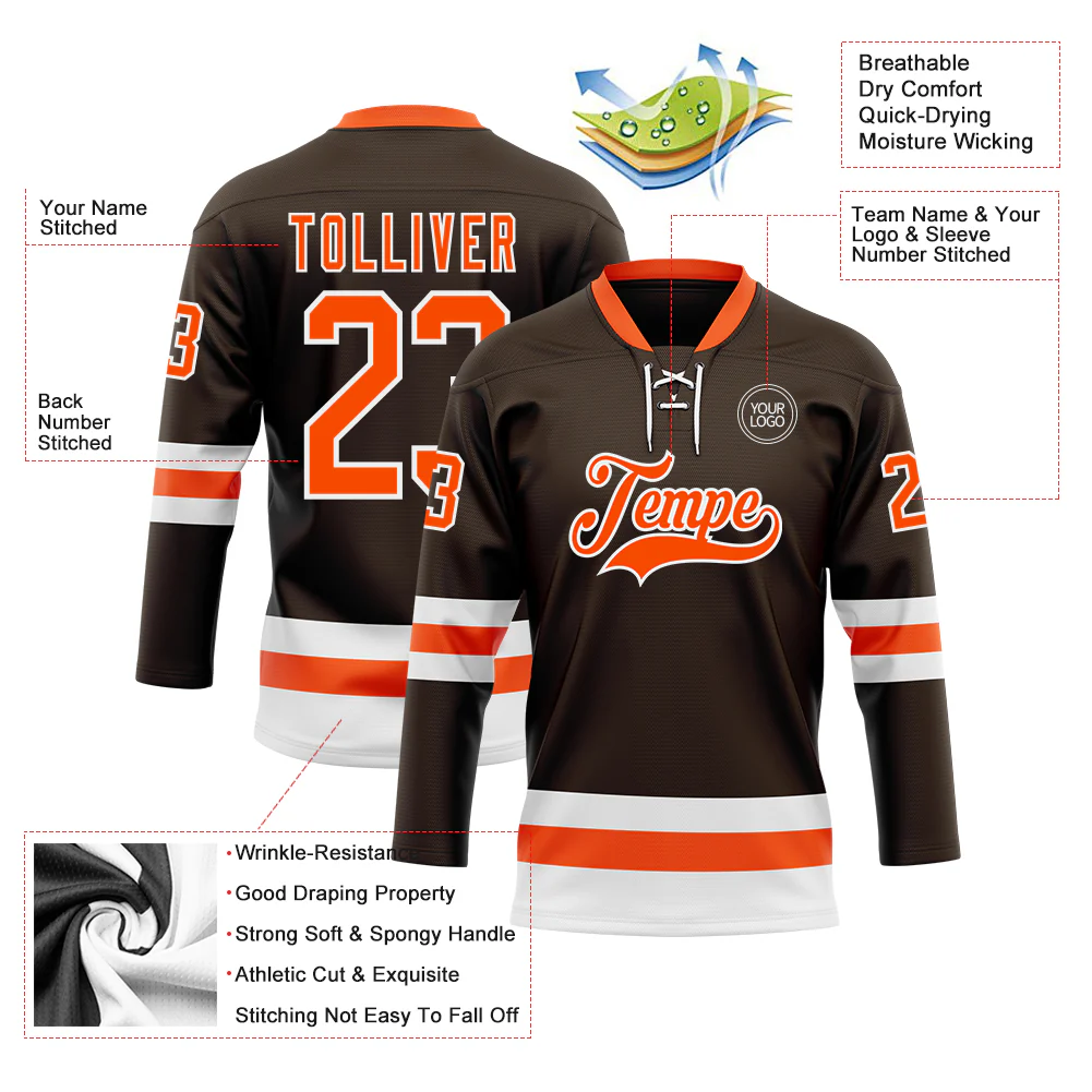 Custom Brown Orange-White Hockey Lace Neck Jersey