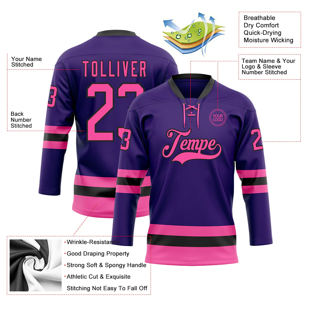 Custom Purple Pink-Black Hockey Lace Neck Jersey