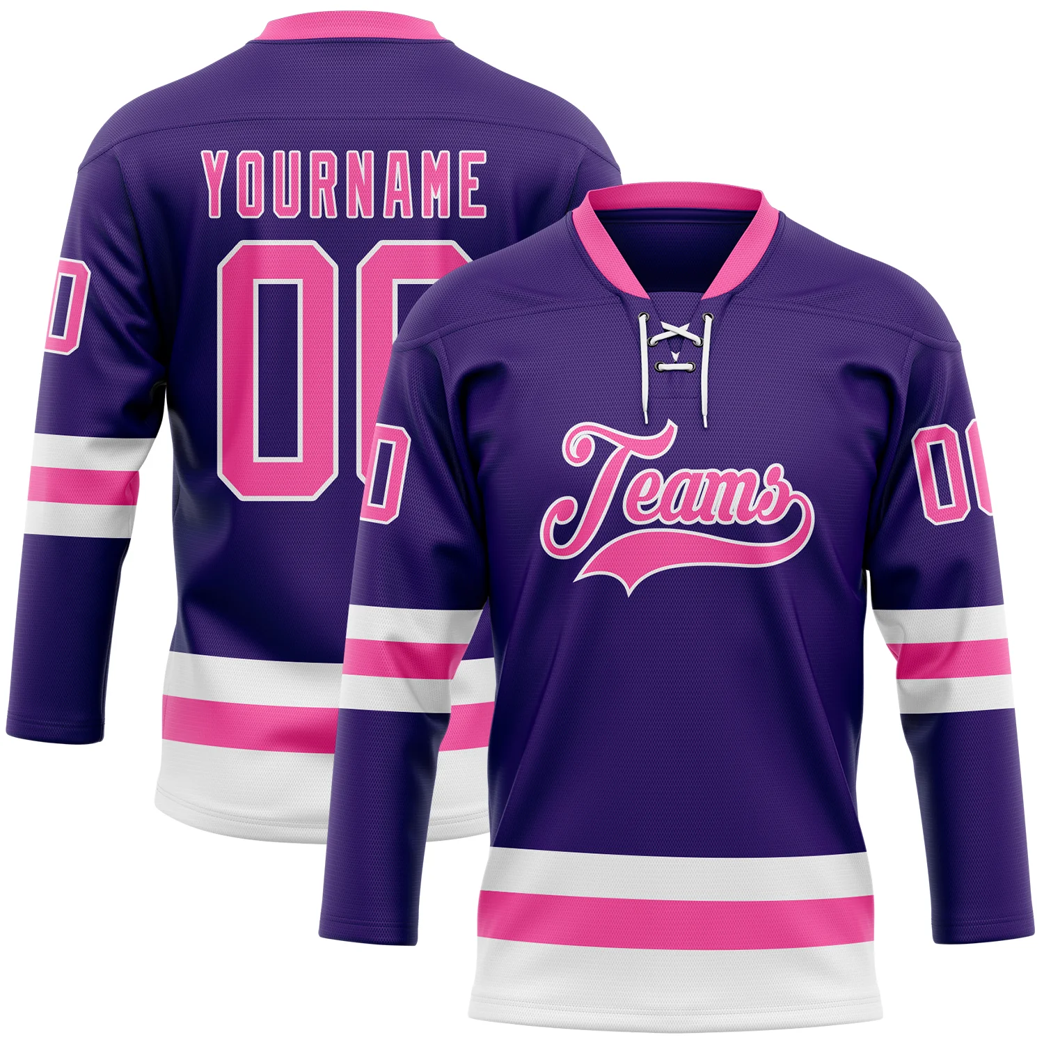 Custom Purple Pink-White Hockey Lace Neck Jersey