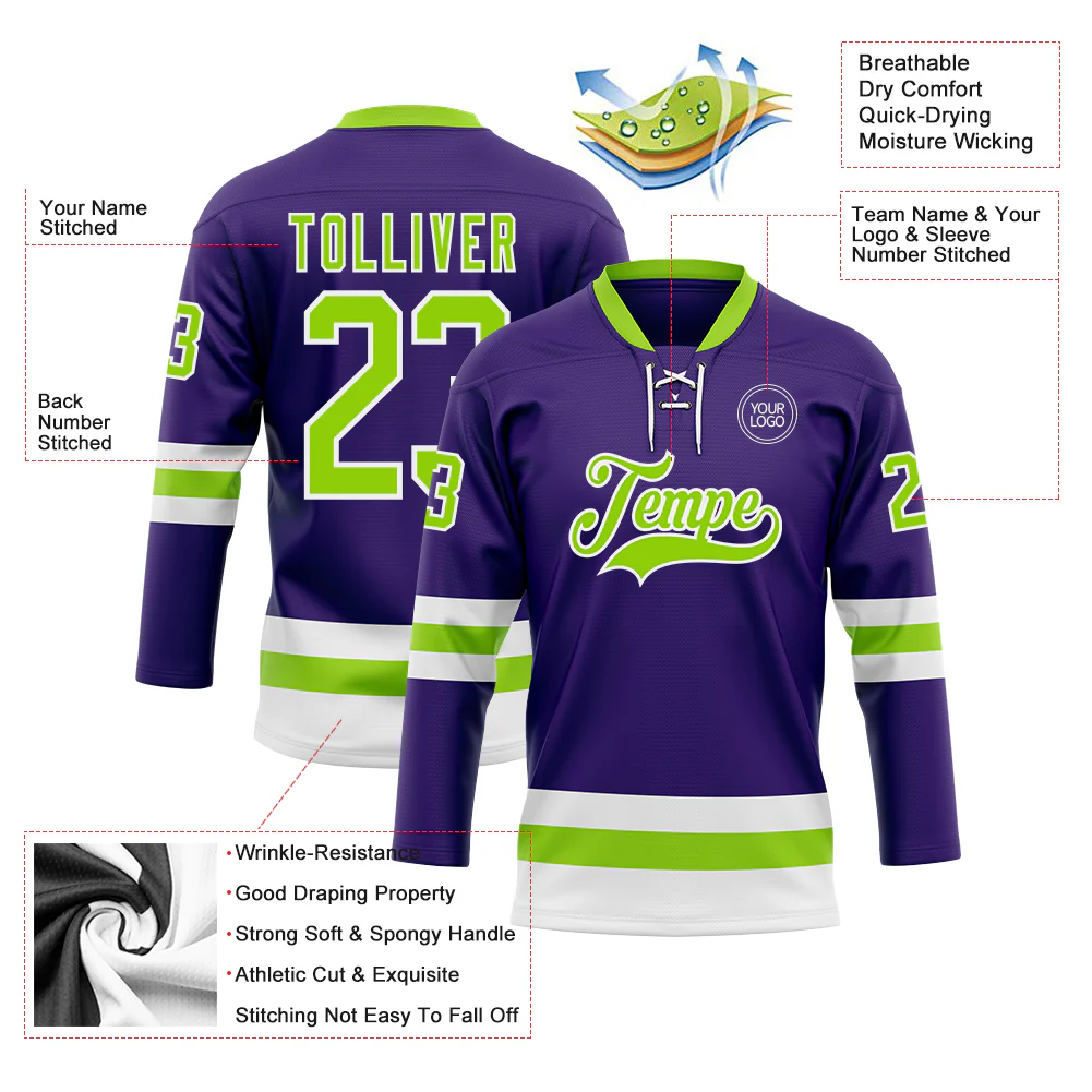 Custom Purple Neon Green-White Hockey Lace Neck Jersey