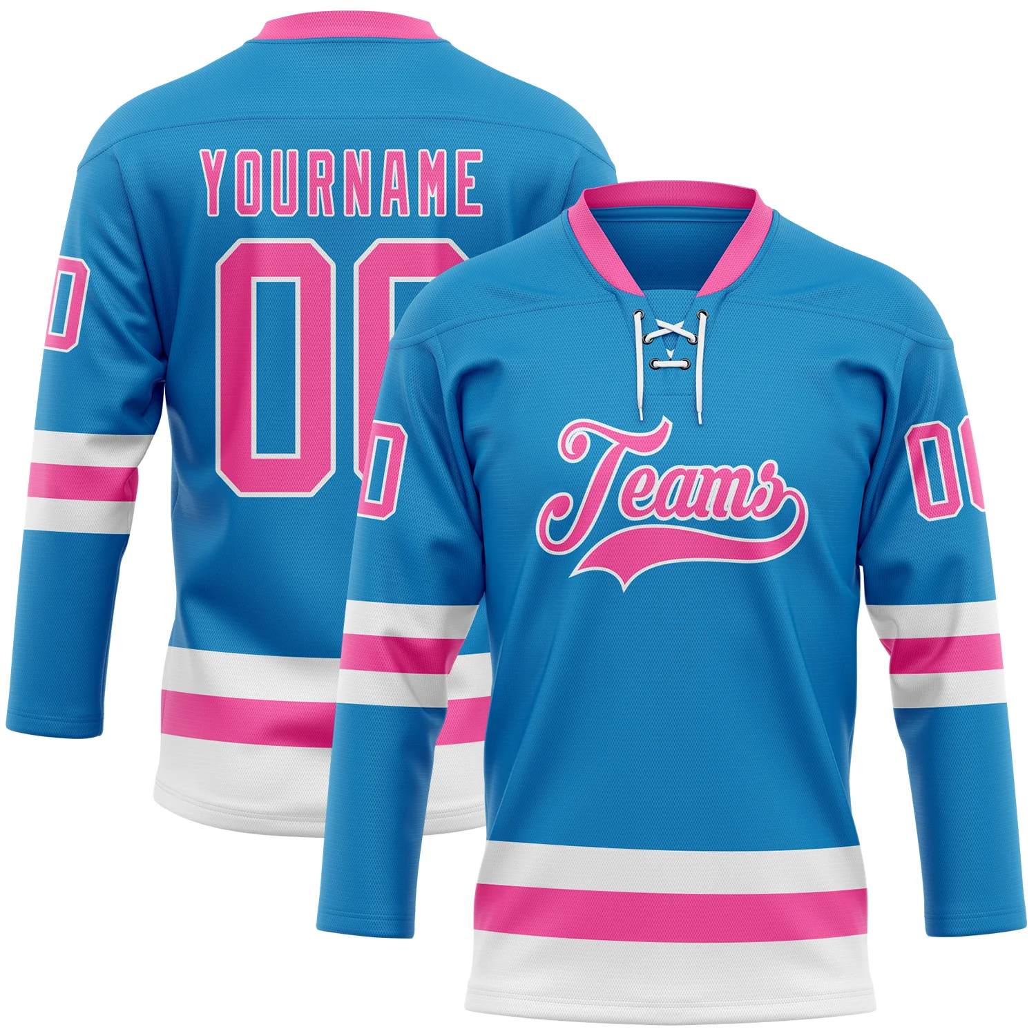 Custom Blue Pink-Black Hockey Lace Neck Jersey