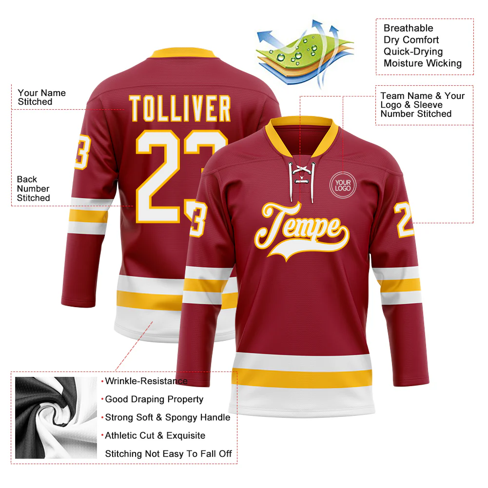 Custom Maroon White-Gold Hockey Lace Neck Jersey